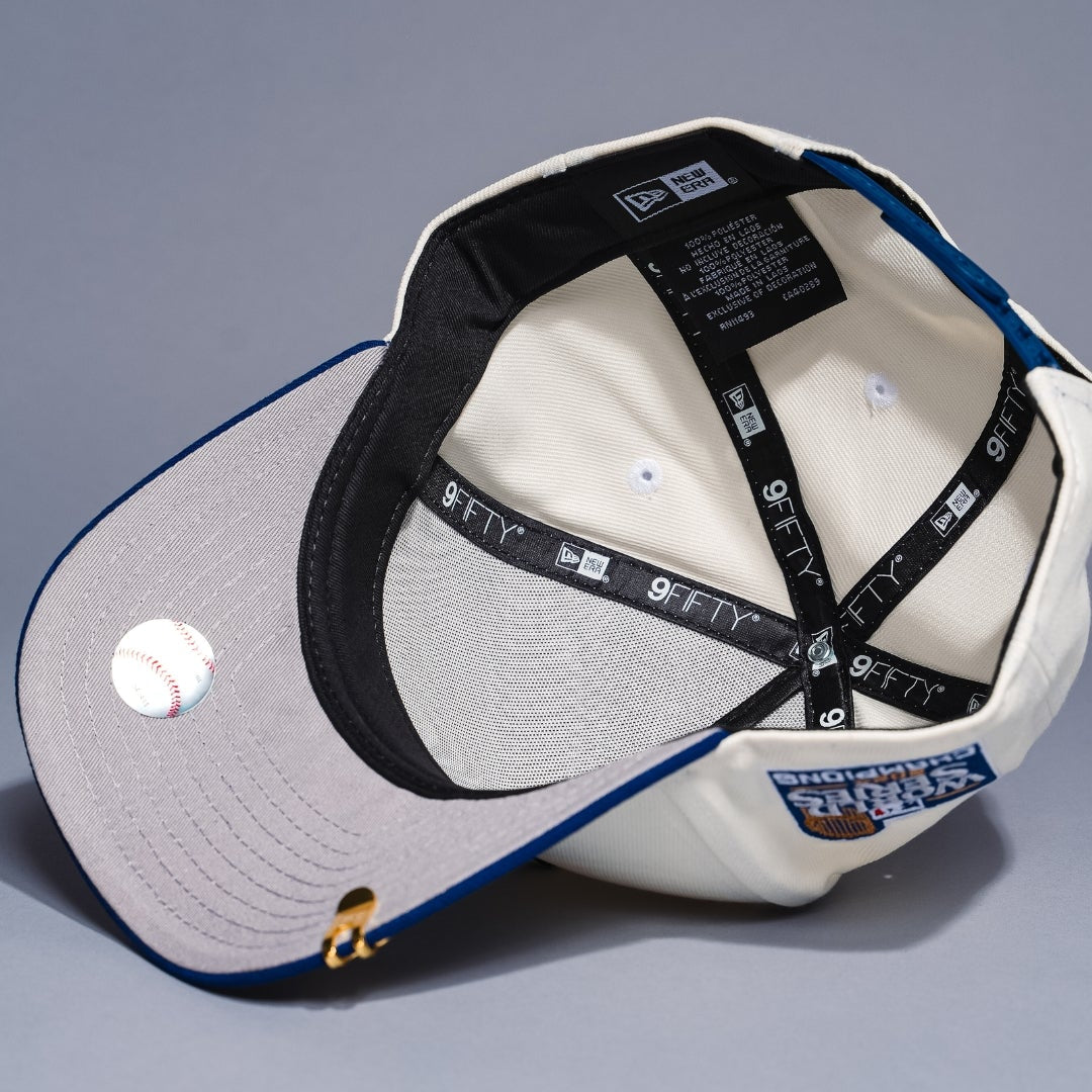 NEW ERA 9FIFTY A-FRAME CHROME/BLUE LOS ANGELES DODGERS W/ WORLD SERIES CHAMPIONS SIDE PATCH