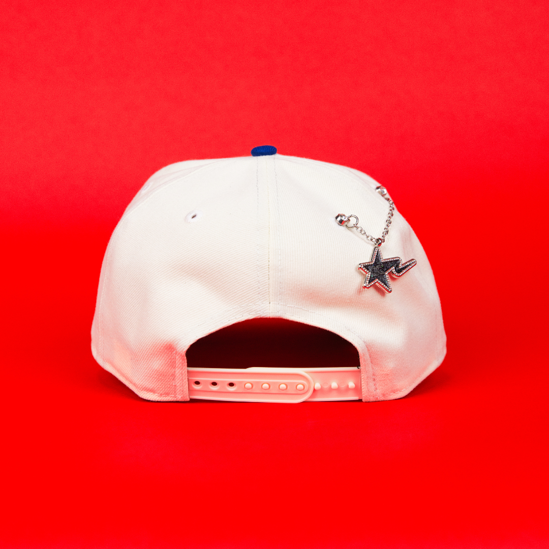 NEW ERA 9FIFTY A-FRAME CHROME/ BLUE TORONTO BLUE JAYS SNAPBACK W/ 10TH ANNIVERSARY SIDE PATCH