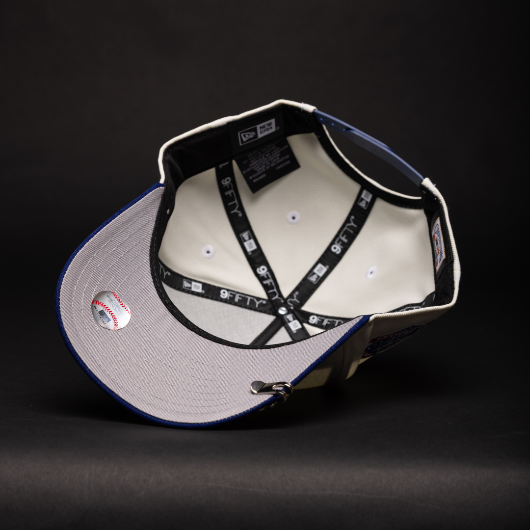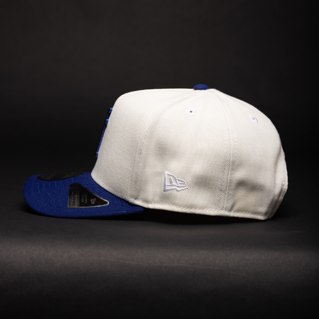 NEW ERA 9FIFTY A-FRAME CHROME/BLUE UPSIDE DOWN LOS ANGELES DODGERS SNAPBACK W/ 60TH ANNIVERSARY SIDE PATCH
