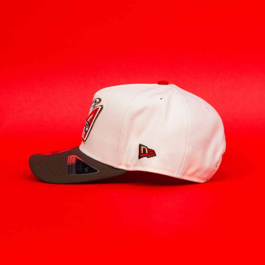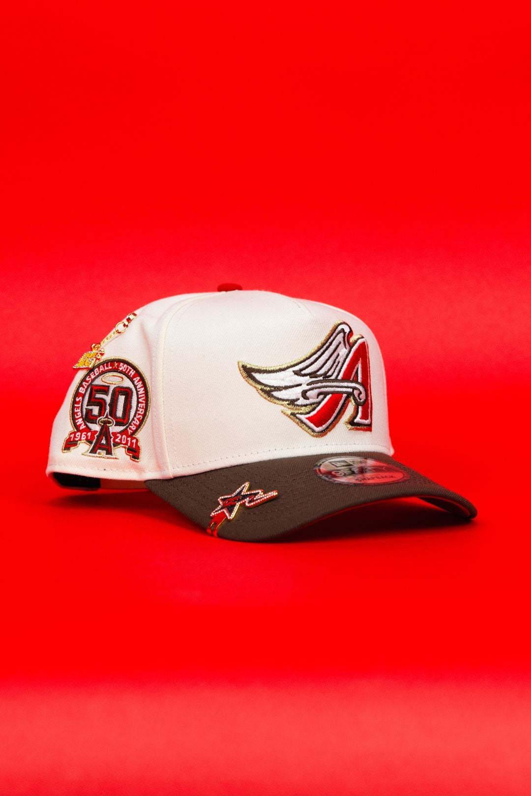 NEW ERA 9FIFTY A-FRAME CHROME/ BROWN ANAHEIM ANGELS SNAPBACK W/ 50TH ANNIVERSARY SIDE PATCH