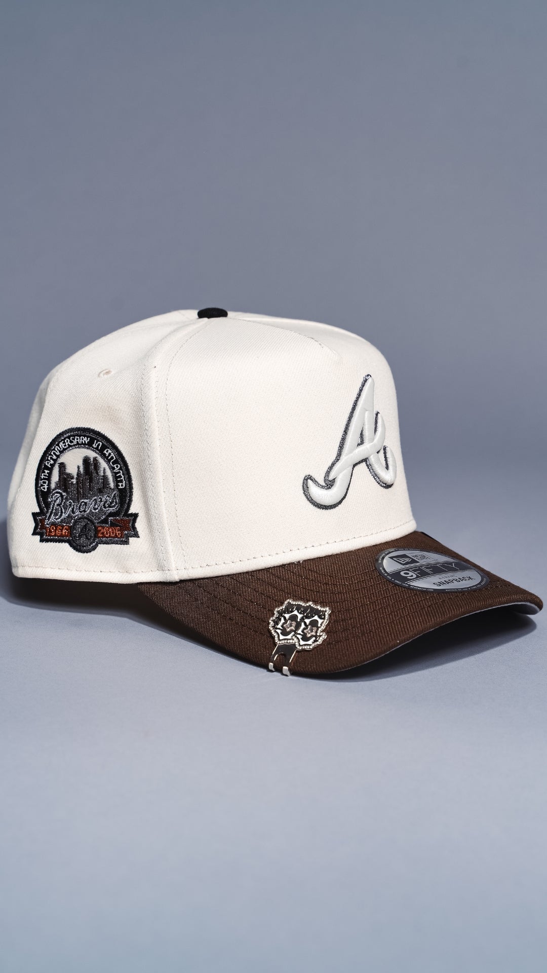 NEW ERA 9FIFTY A-FRAME CHROME/BROWN ATLANTA BRAVES W/ ANNIVERSARY SIDE PATCH