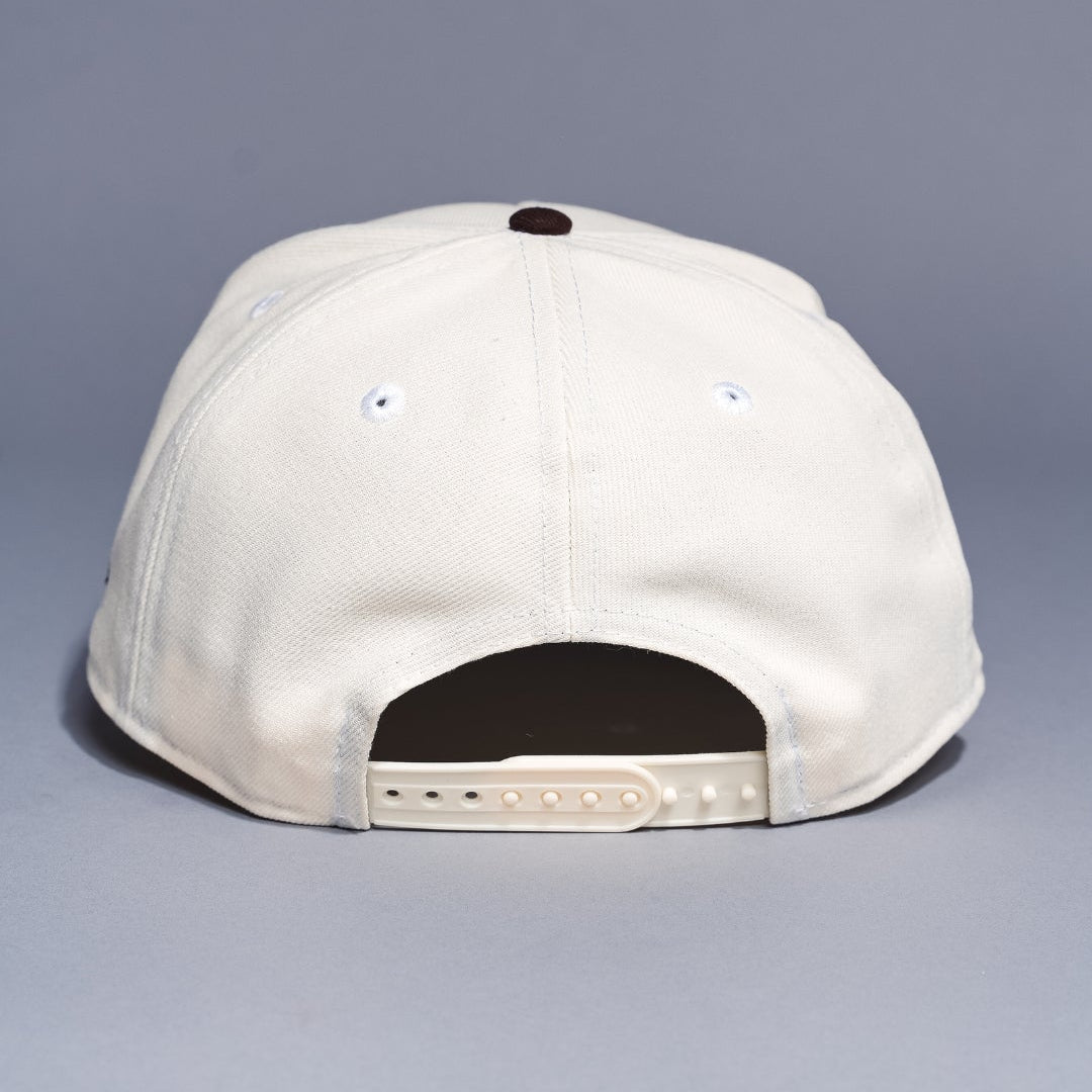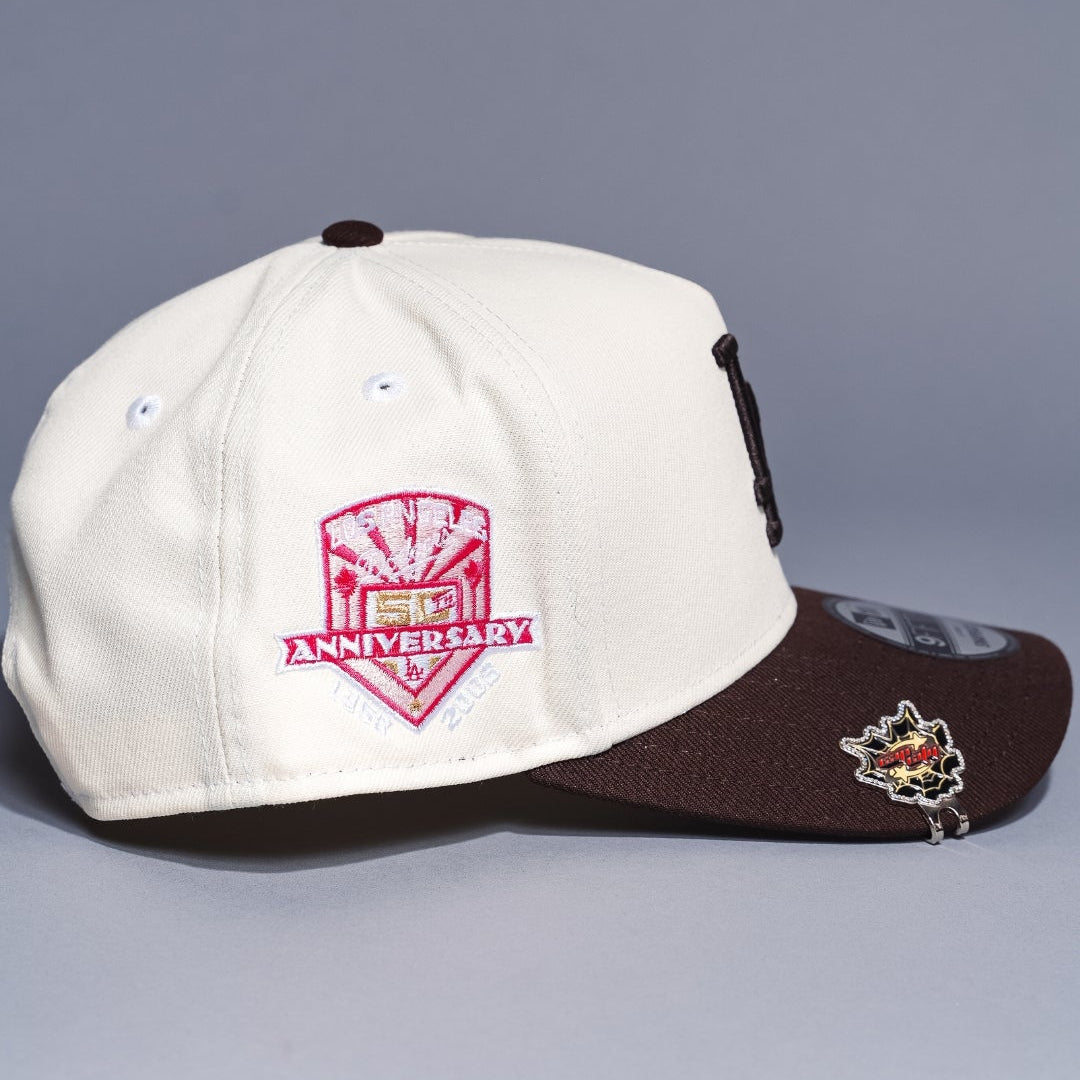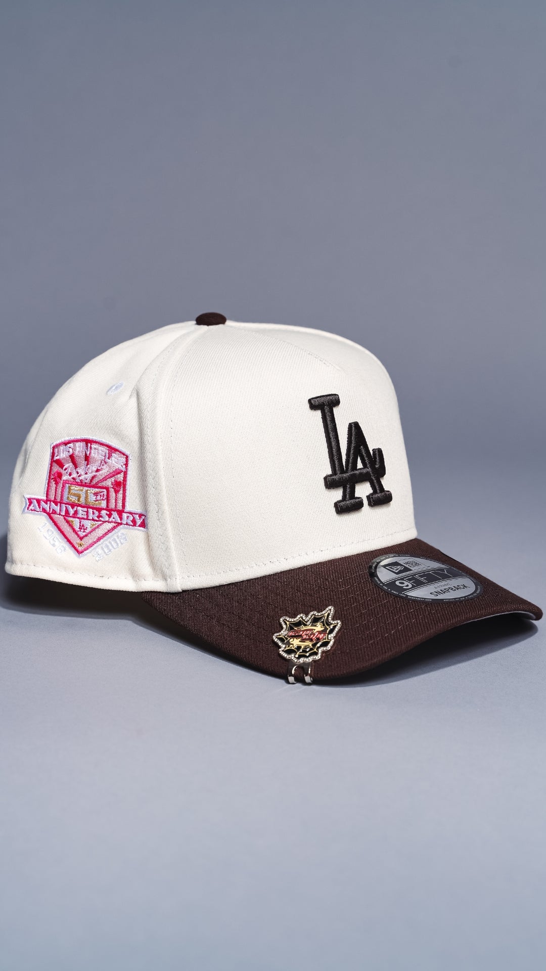 NEW ERA 9FIFTY A-FRAME CHROME/BROWN LOS ANGELES DODGERS W/ 50TH ANNIVERSARY SIDE PATCH