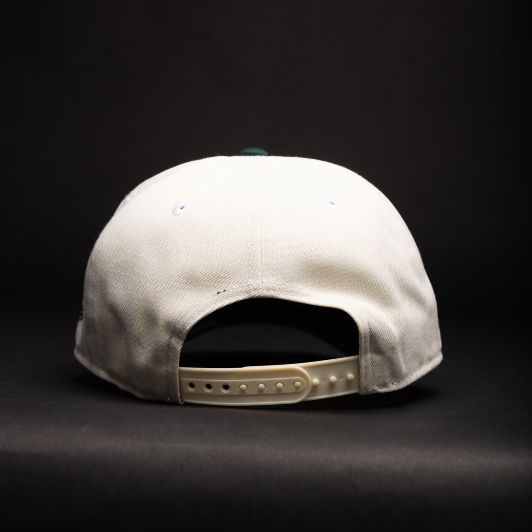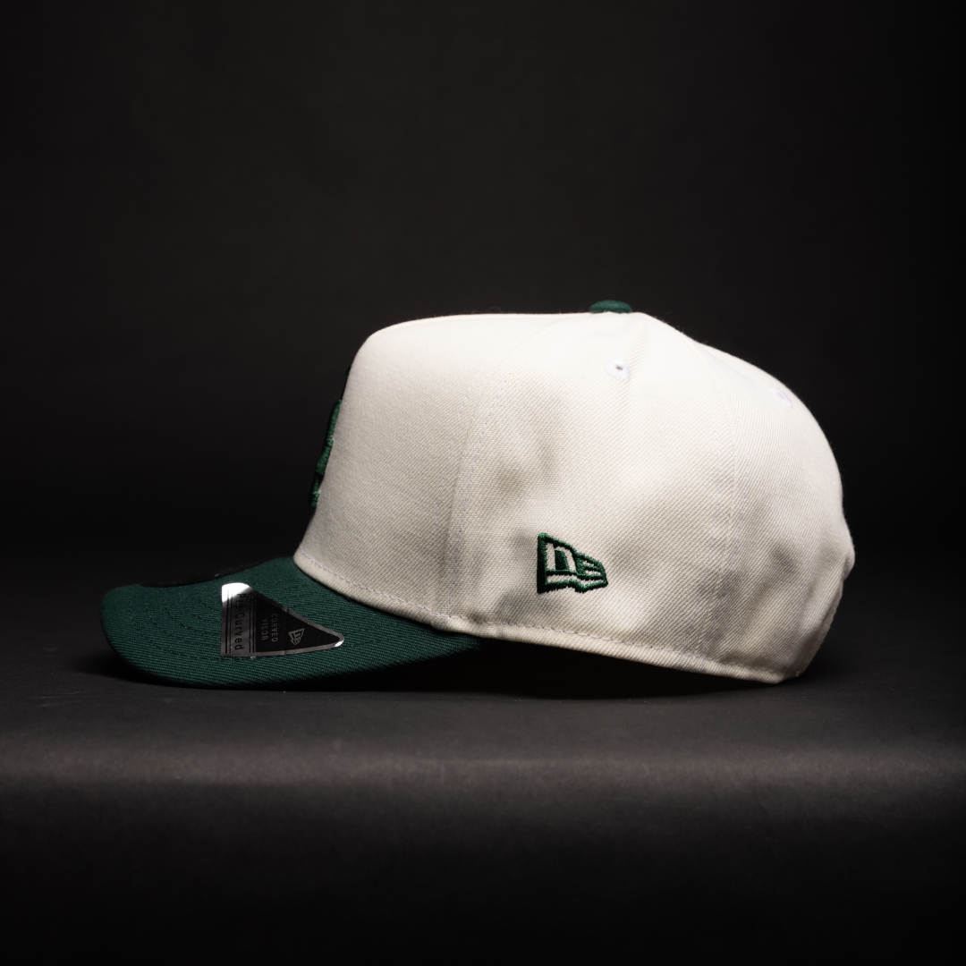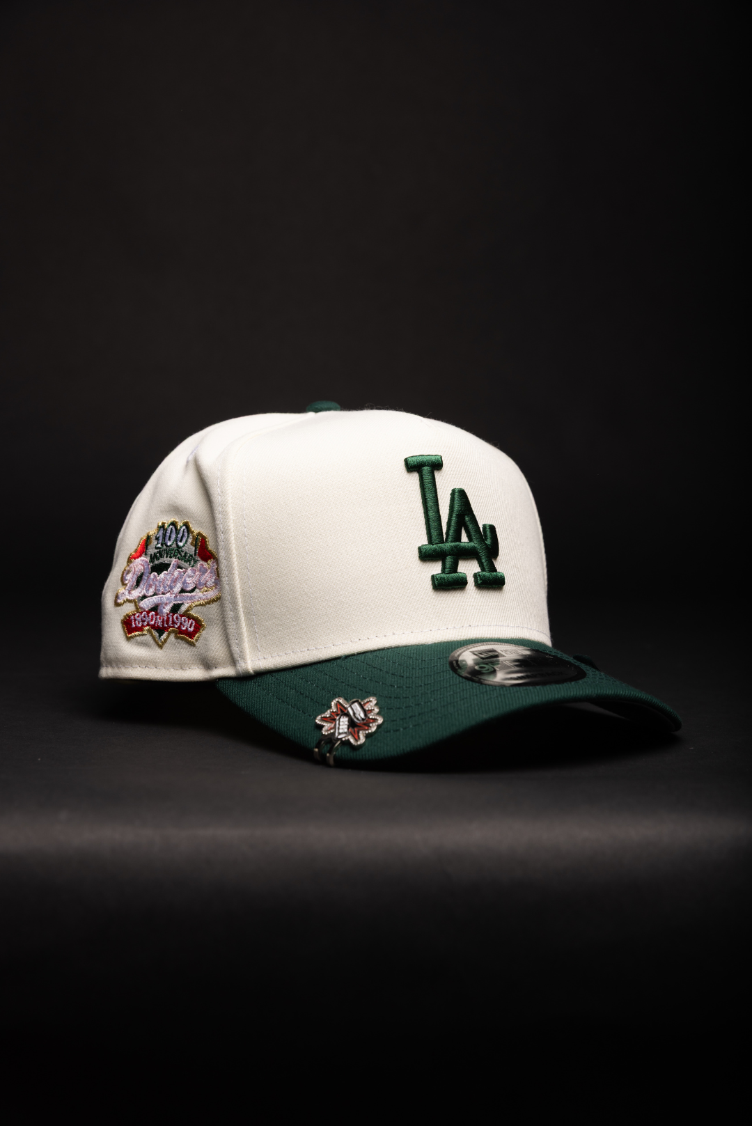 NEW ERA 9FIFTY A-FRAME CHROME/FOREST GREEN LOS ANGELES DODGERS SNAPBACK W/ 100TH ANNIVERSARY SIDE PATCH
