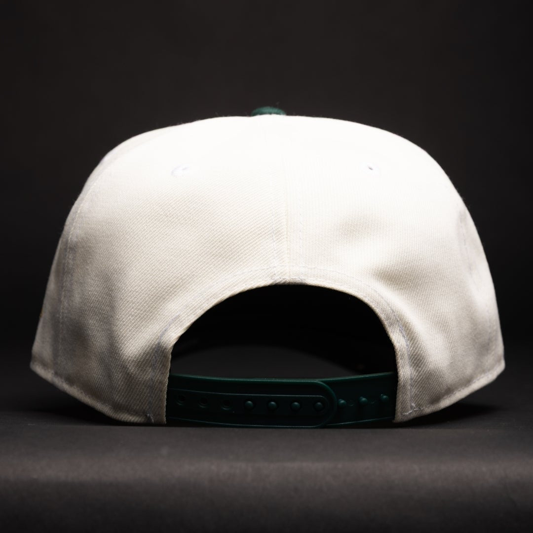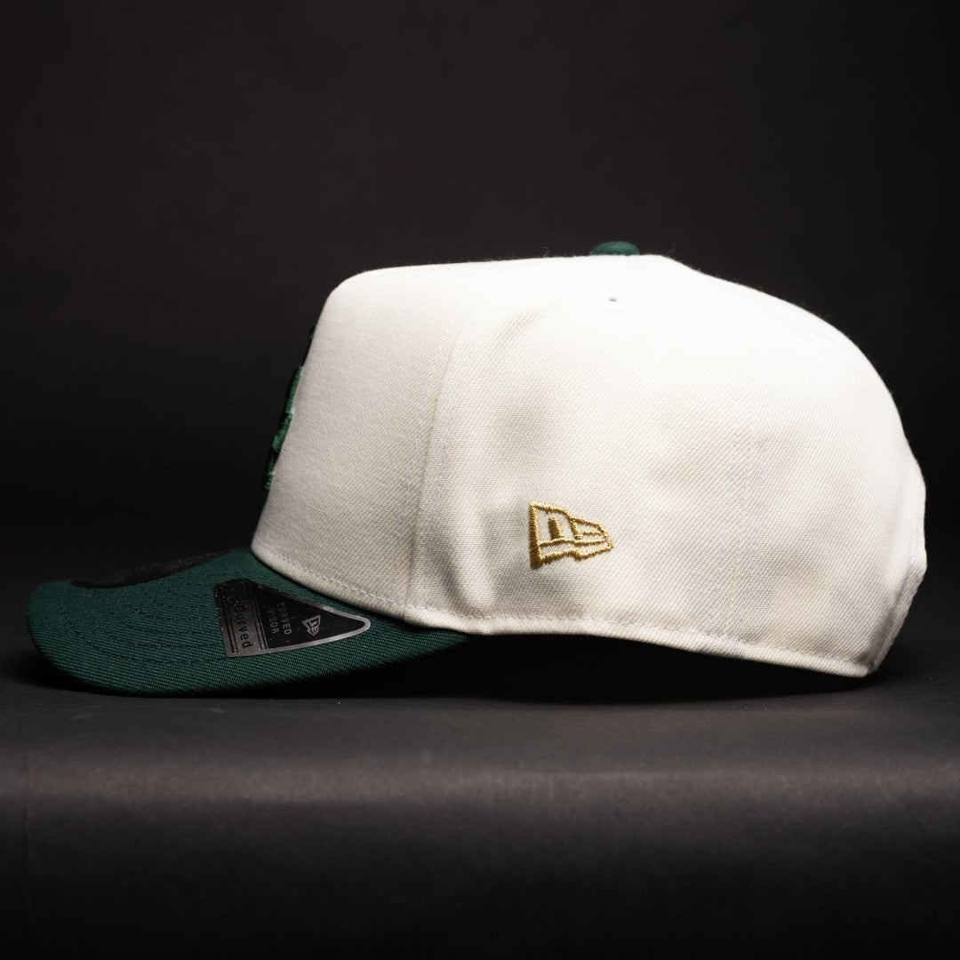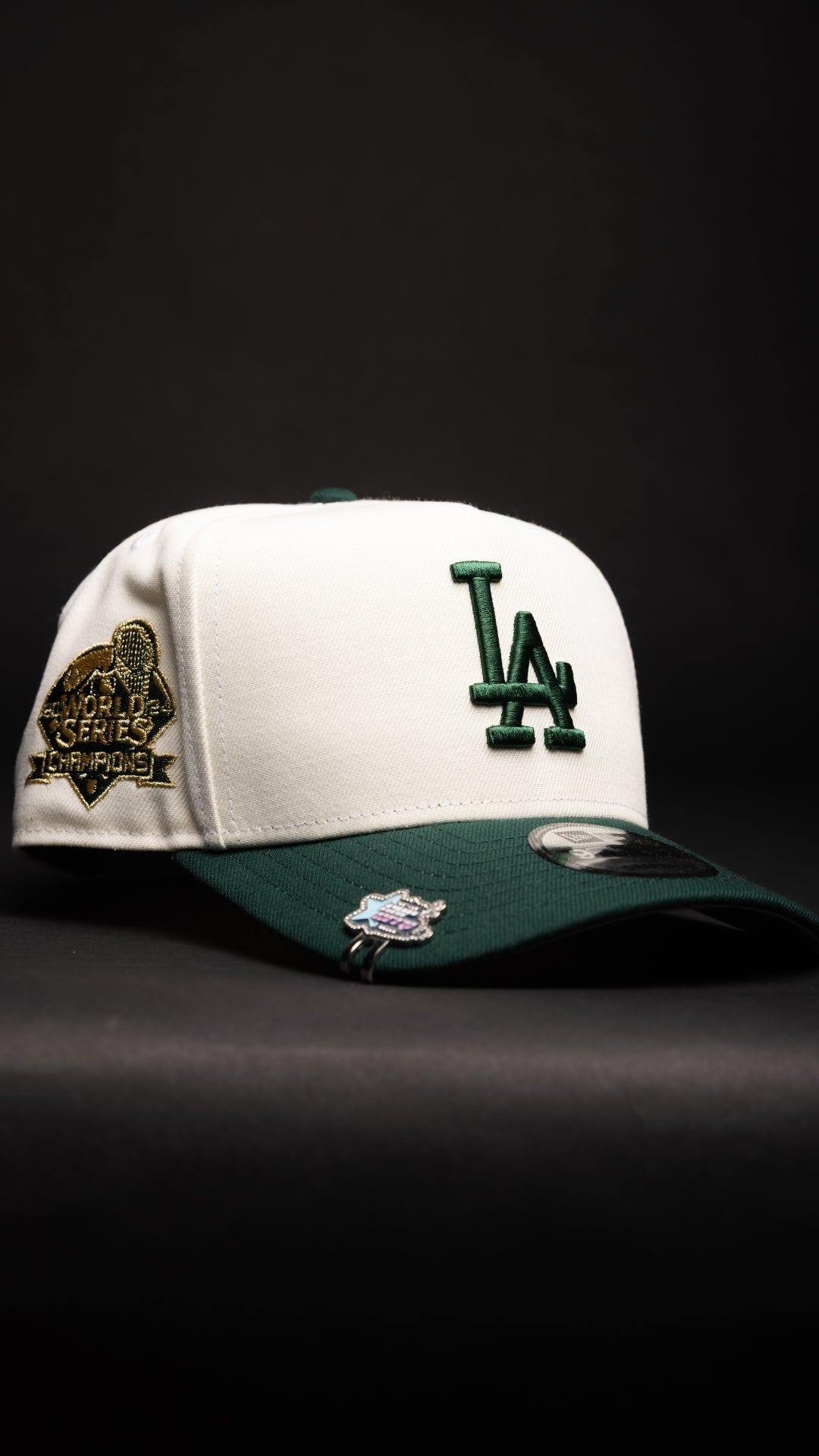 NEW ERA 9FIFTY A-FRAME CHROME/FOREST GREEN LOS ANGELES DODGERS SNAPBACK W/ WORLD SERIES CHAMPIONS SIDE PATCH