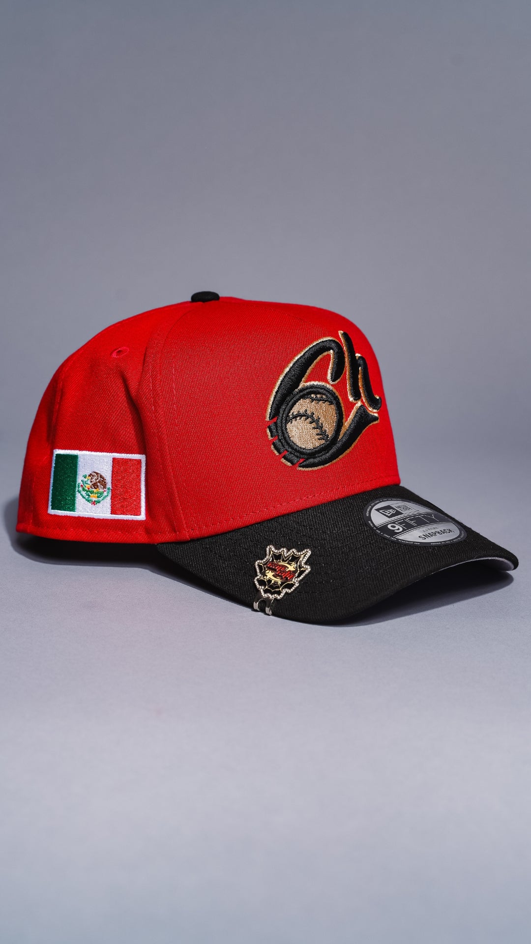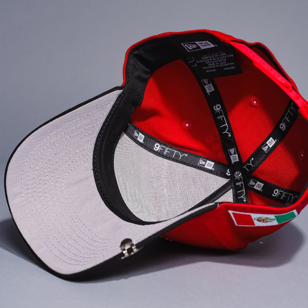 NEW ERA 9FIFTY A-FRAME DARK RED/BLACK CHARROS DE JALISCO SNAPBACK W/ MEXICO FLAG SIDE PATCH