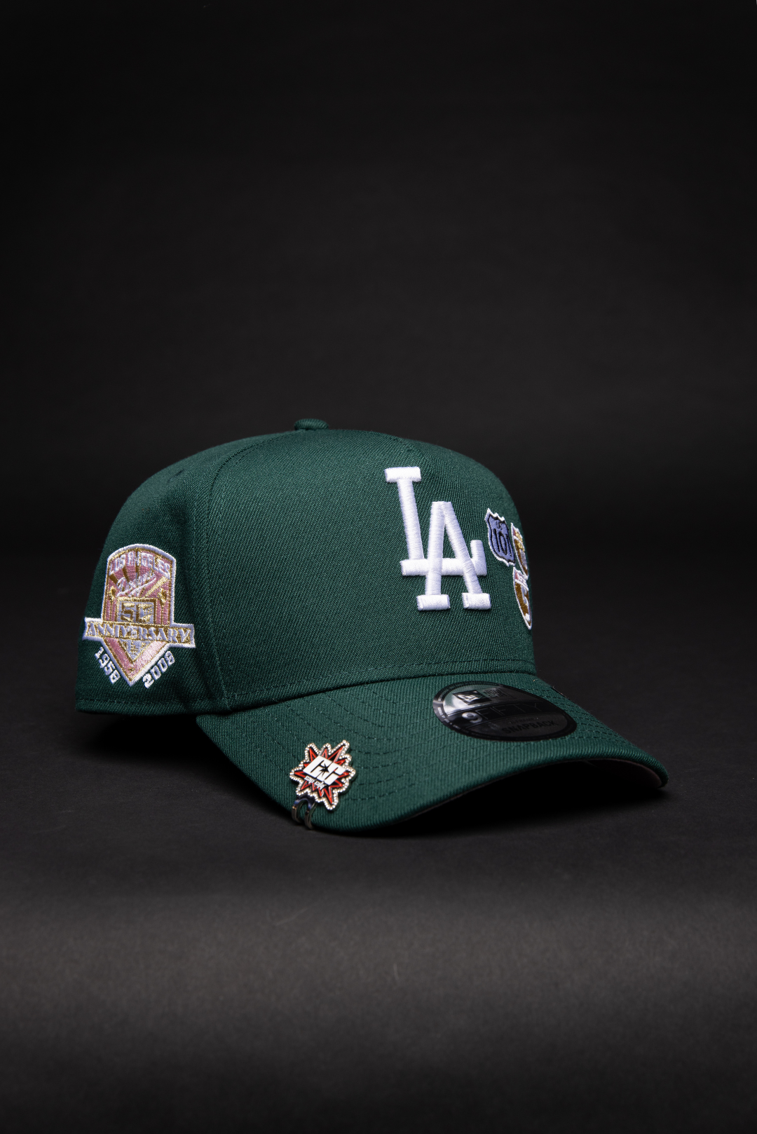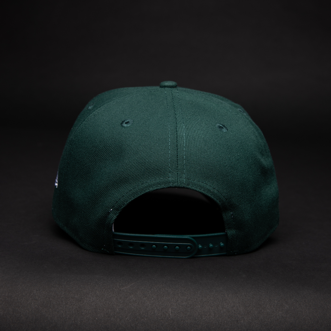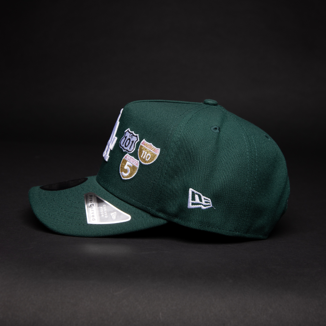 NEW ERA 9FIFTY A-FRAME FOREST GREEN LOS ANGELES DODGERS SNAPBACK W/ EMBROIDERY + 50TH ANNIVERSARY SIDE PATCH