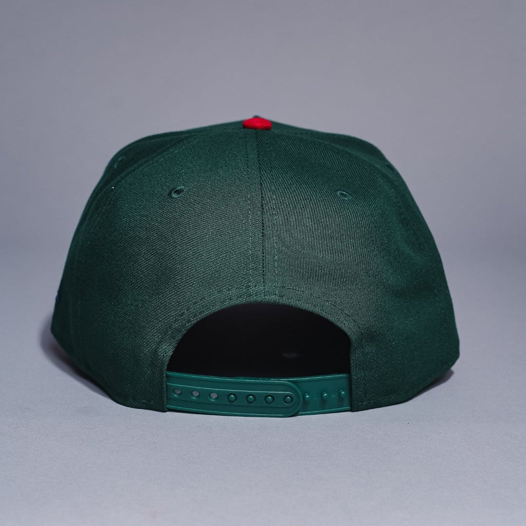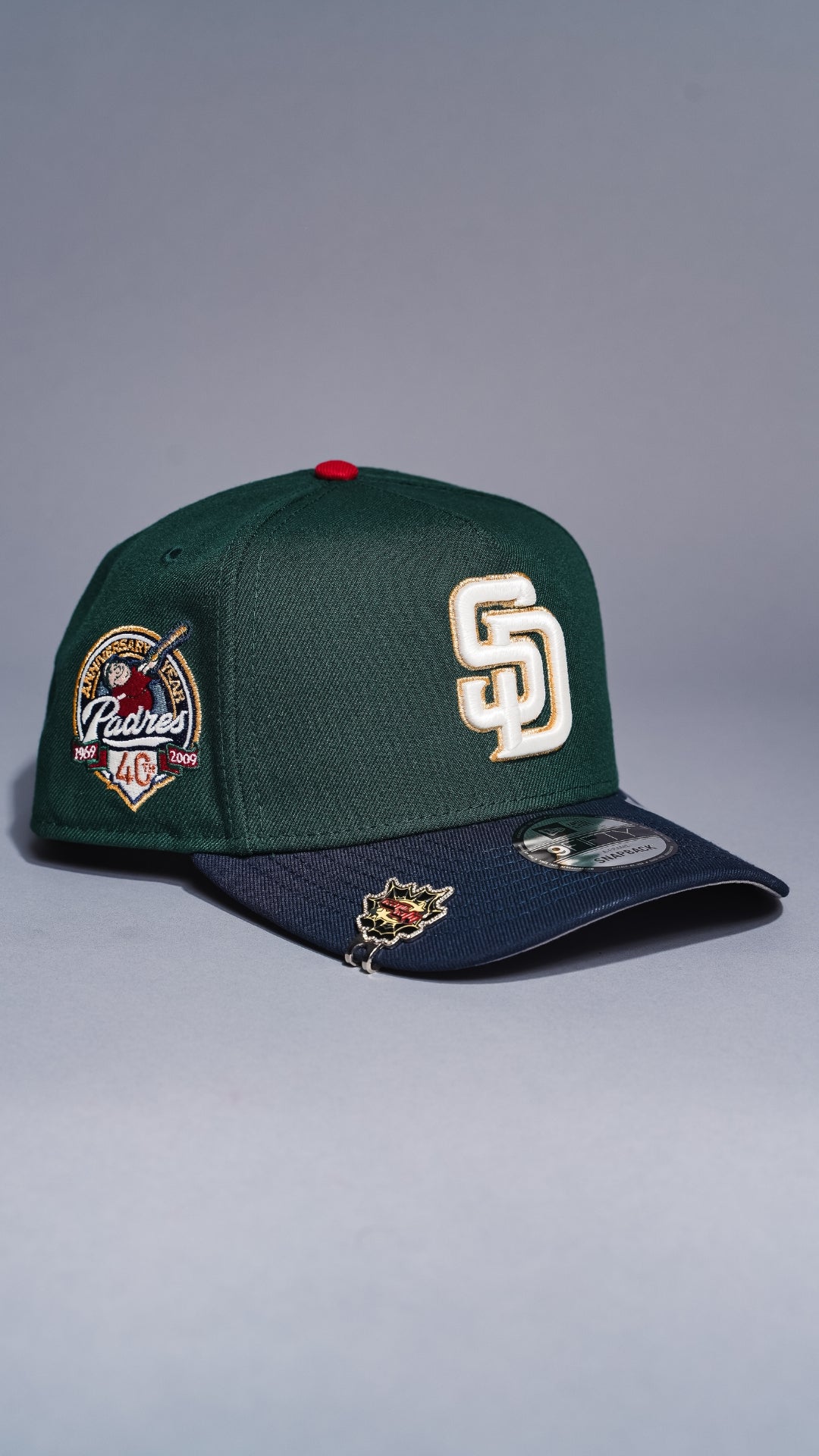 NEW ERA 9FIFTY A-FRAME FOREST GREEN/NAVY SAN DIEGO PADRES SNAPBACK W/ 40TH ANNIVERSARY SIDE PATCH