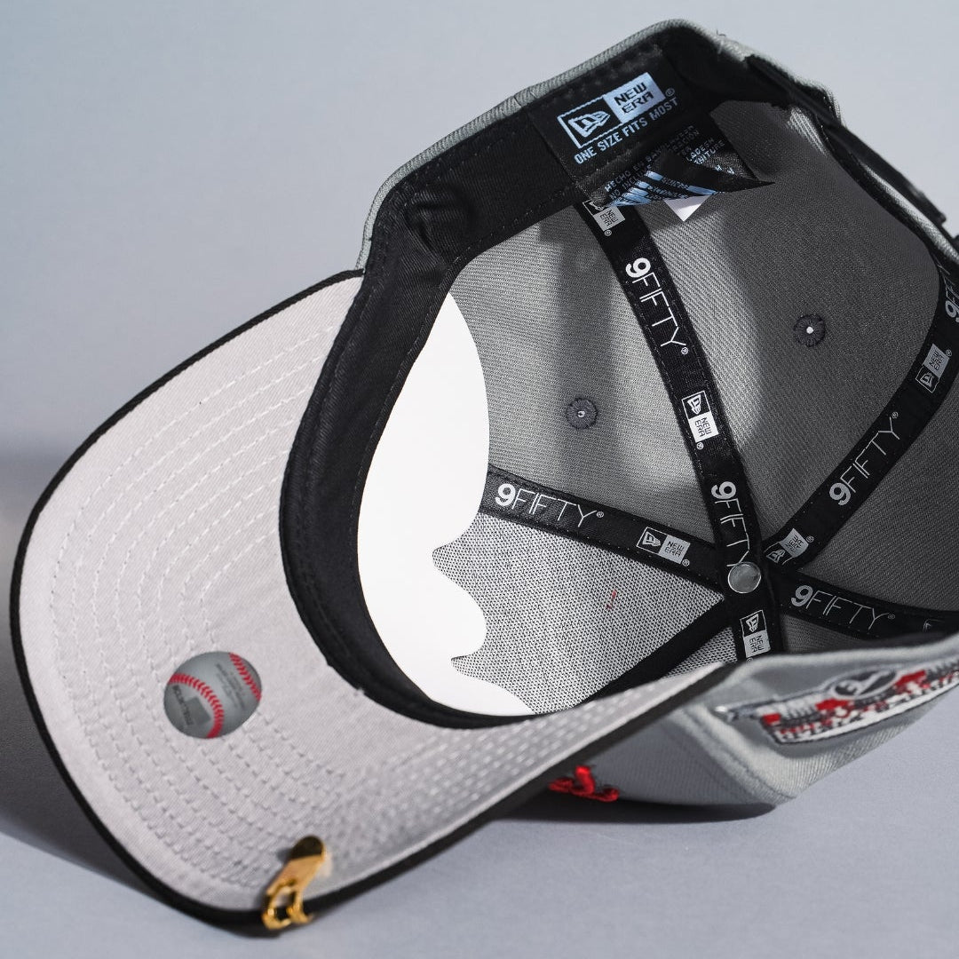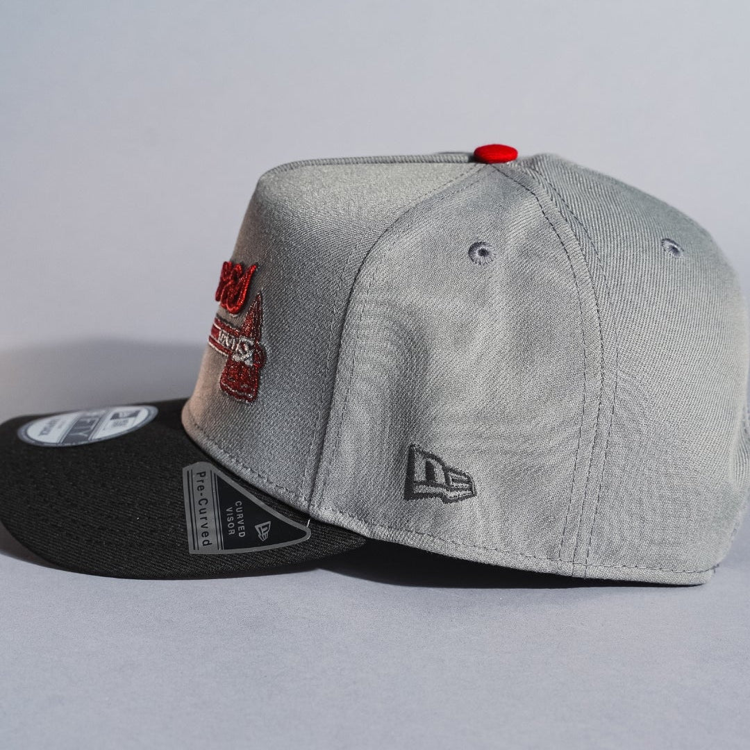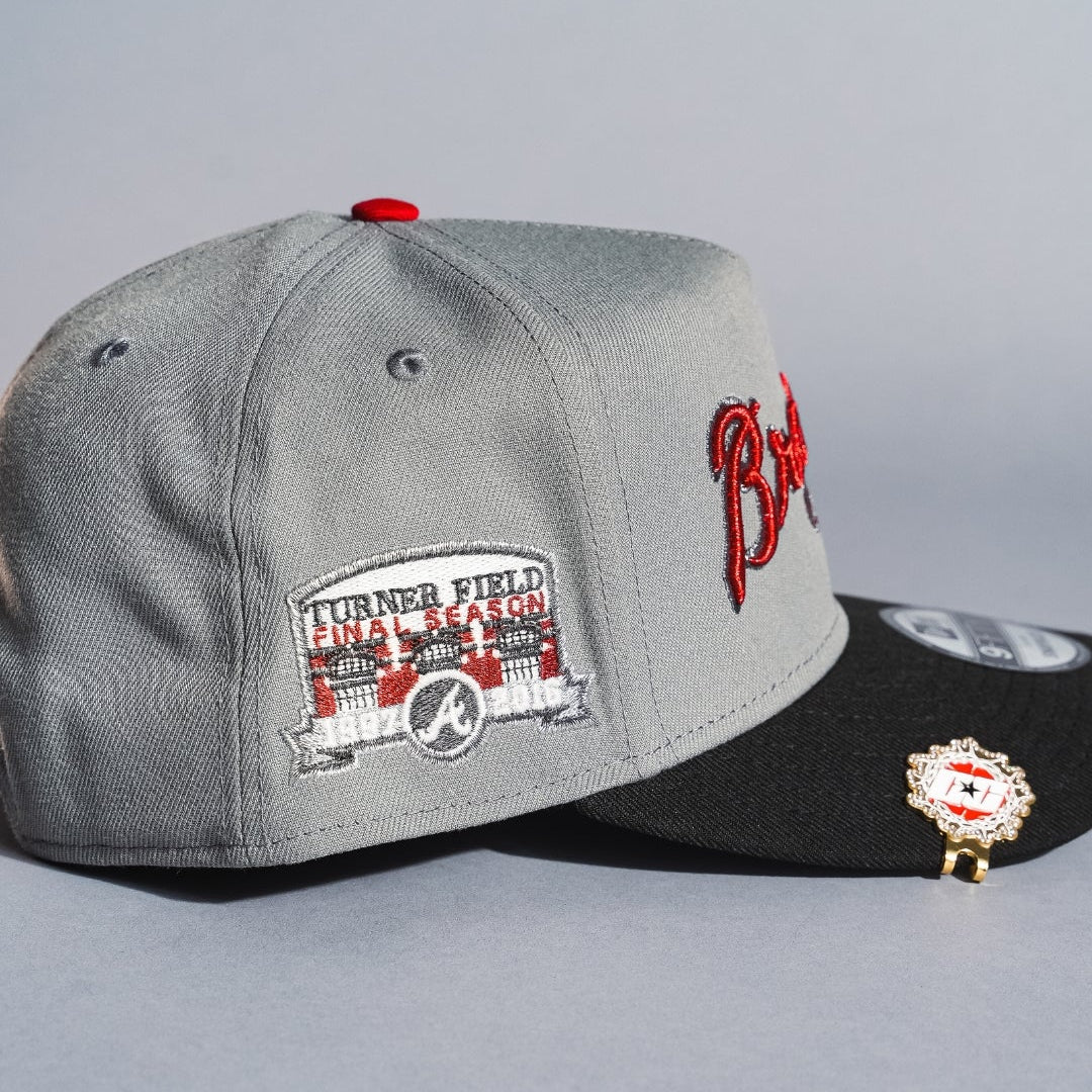 NEW ERA 9FIFTY A-FRAME GREY/BLACK ATLANTA BRAVES SCRIPT SNAPBACK W/ TURNER FIELD SIDE PATCH