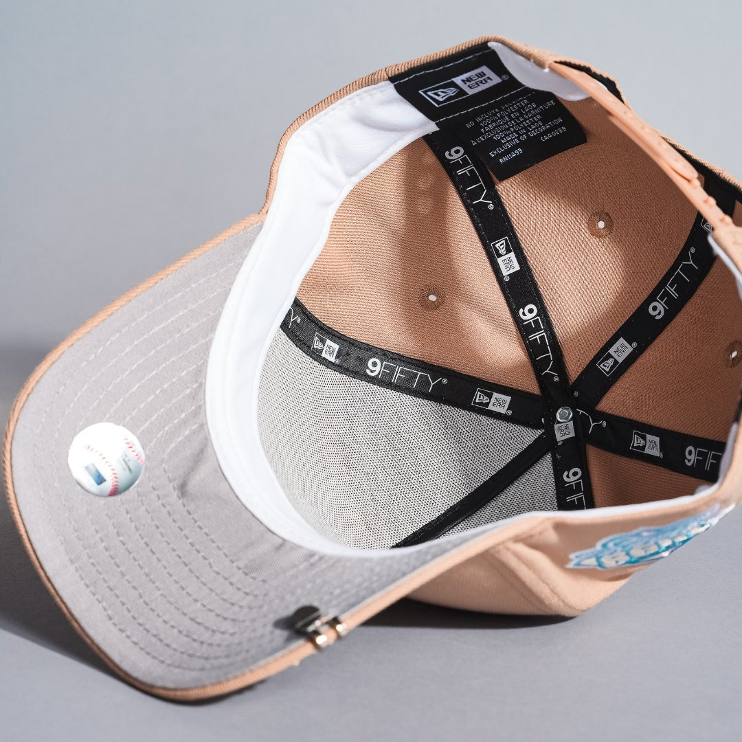 NEW ERA 9FIFTY A-FRAME LIGHT KHAKI NEW YORK YANKEES SNAPBACK W/ 1999 WORLD SERIES SIDE PATCH