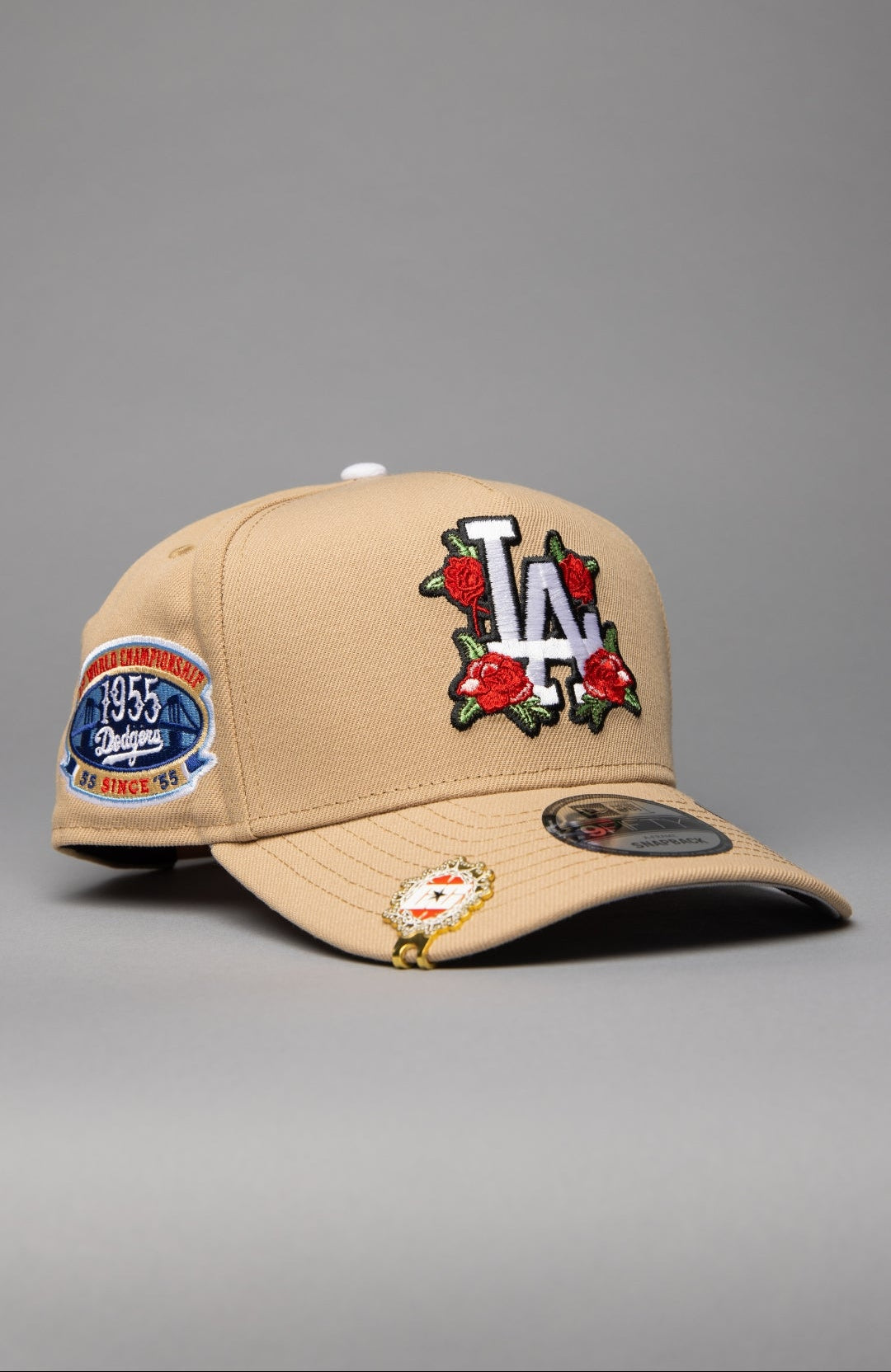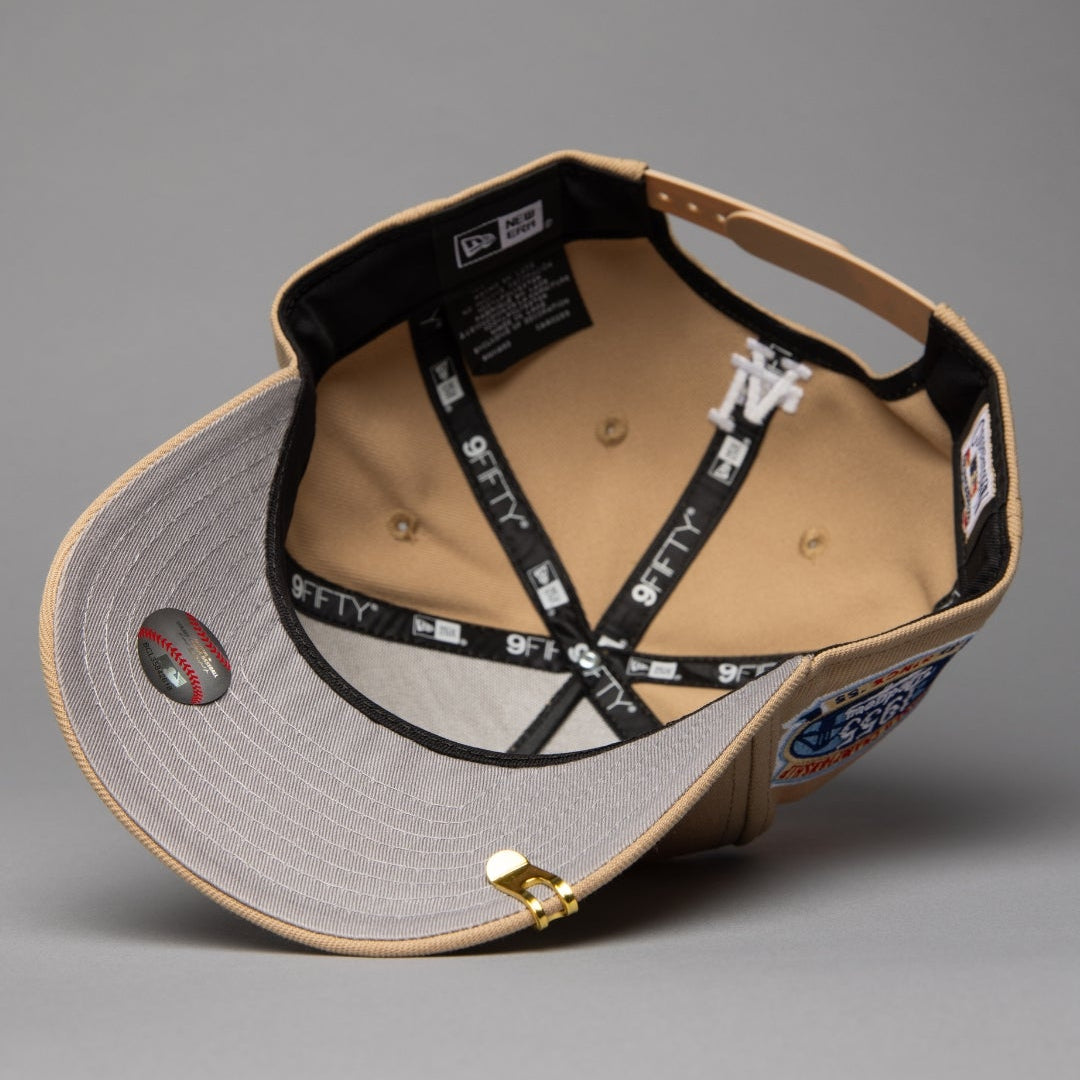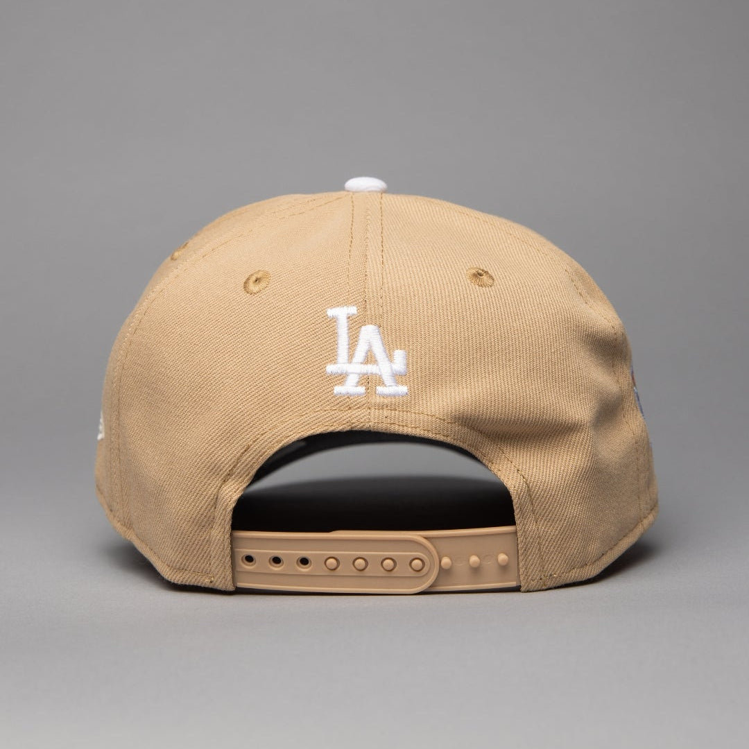 NEW ERA 9FIFTY A-FRAME LIGHT KHAKI LOS ANGELES DODGERS W/ ROSES + 1ST CHAMPIONSHIP SIDE PATCH