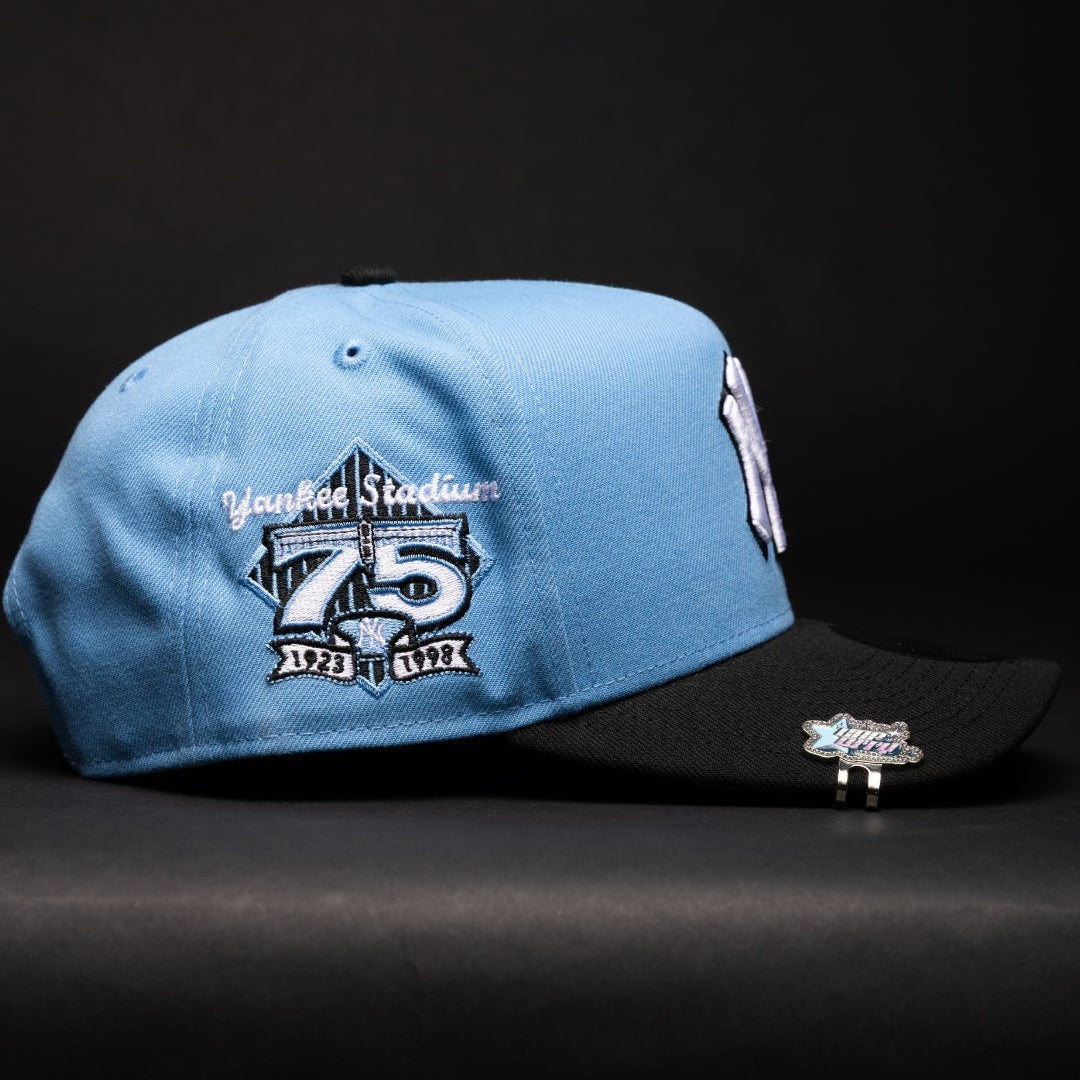 NEW ERA 9FIFTY A-FRAME SKY BLUE/BLACK NEW YORK YANKEES SNAPBACK W/ 75TH ANNIVERSARY SIDE PATCH