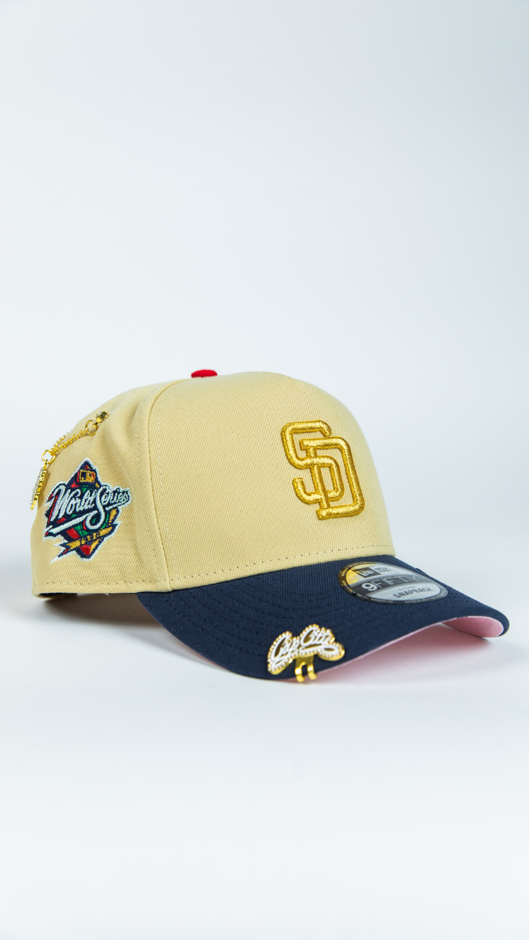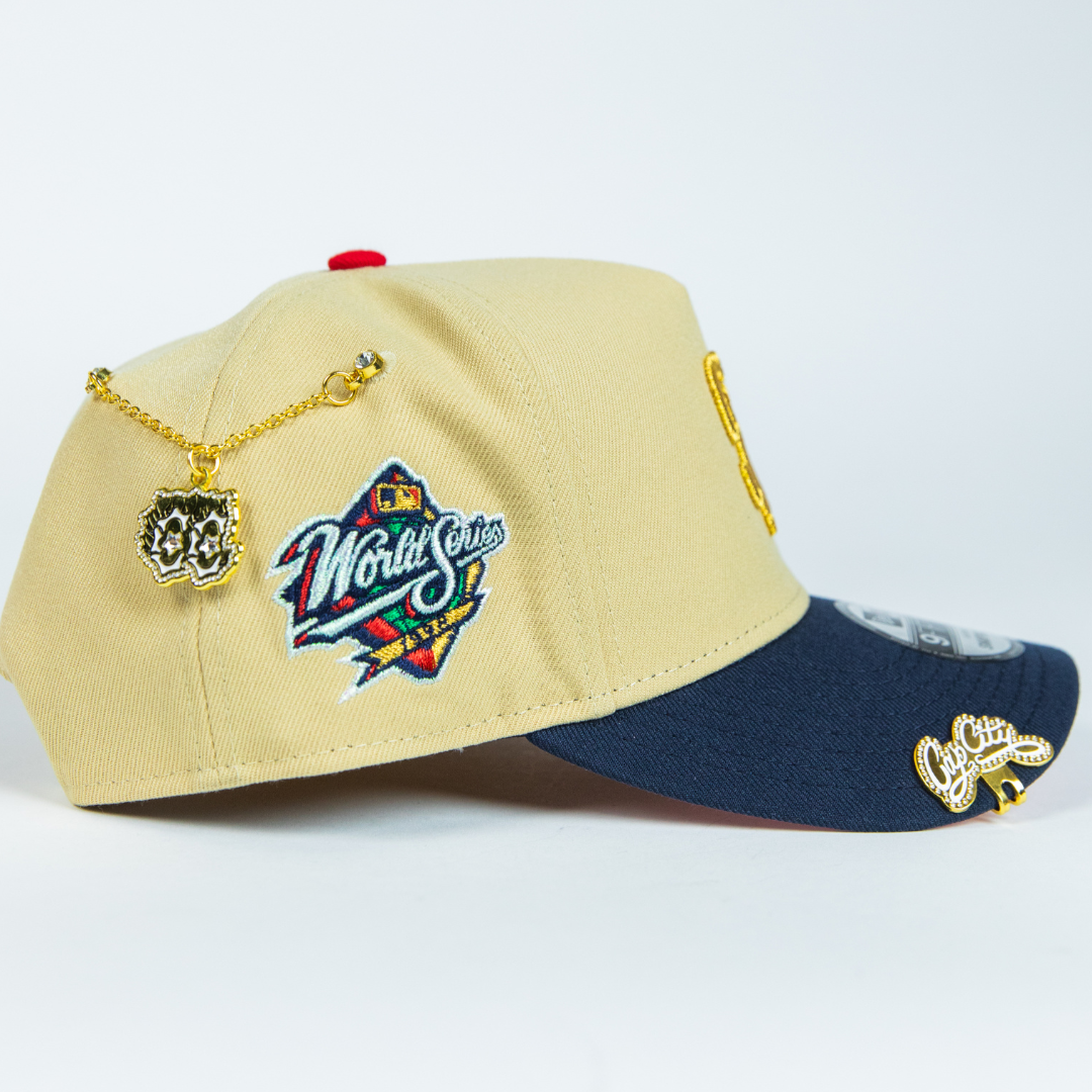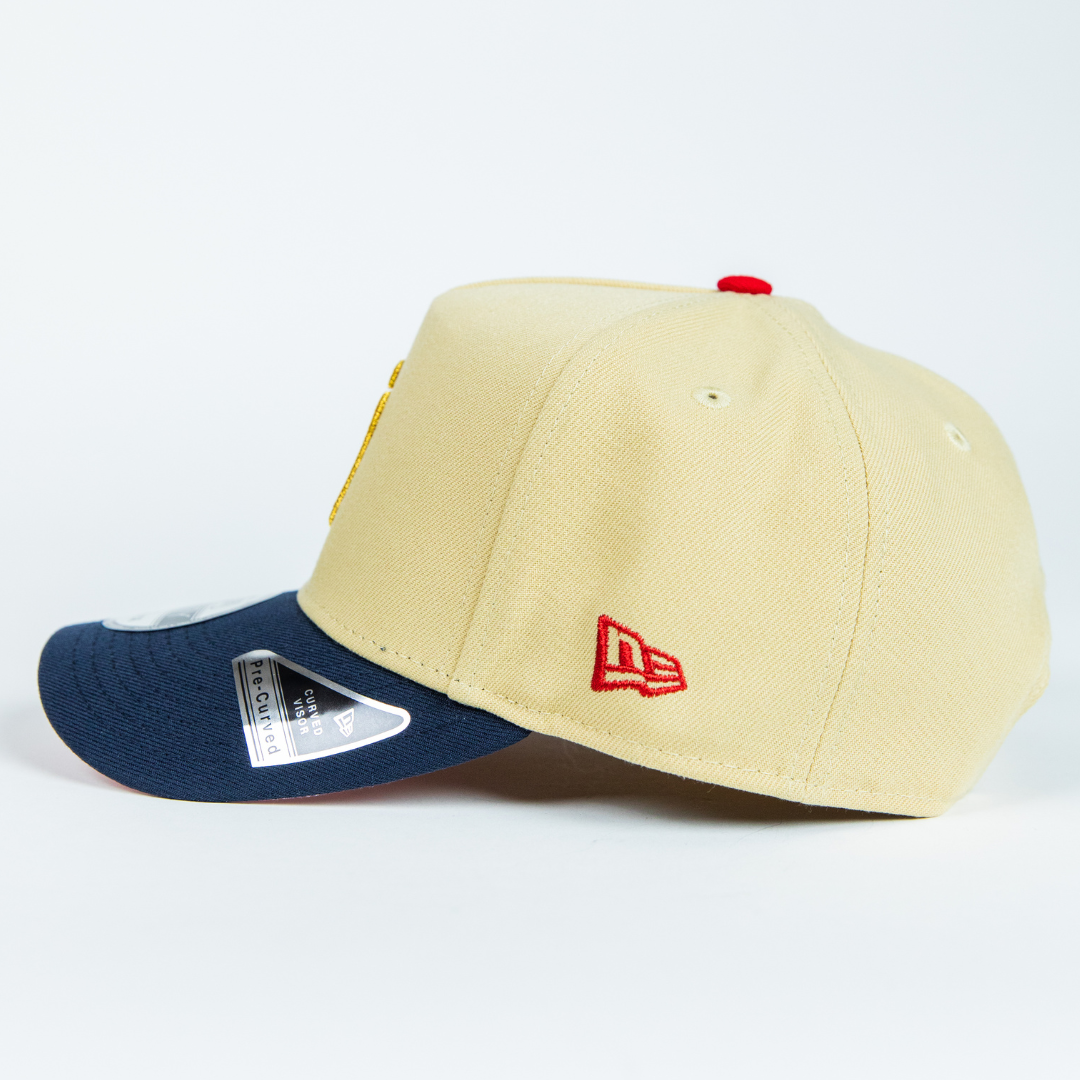 NEW ERA 9FIFTY A-FRAME VEGAS GOLD/ NAVY SAN DIEGO PADRES SNAPBACK W/ WORLD SERIES SIDE PATCH