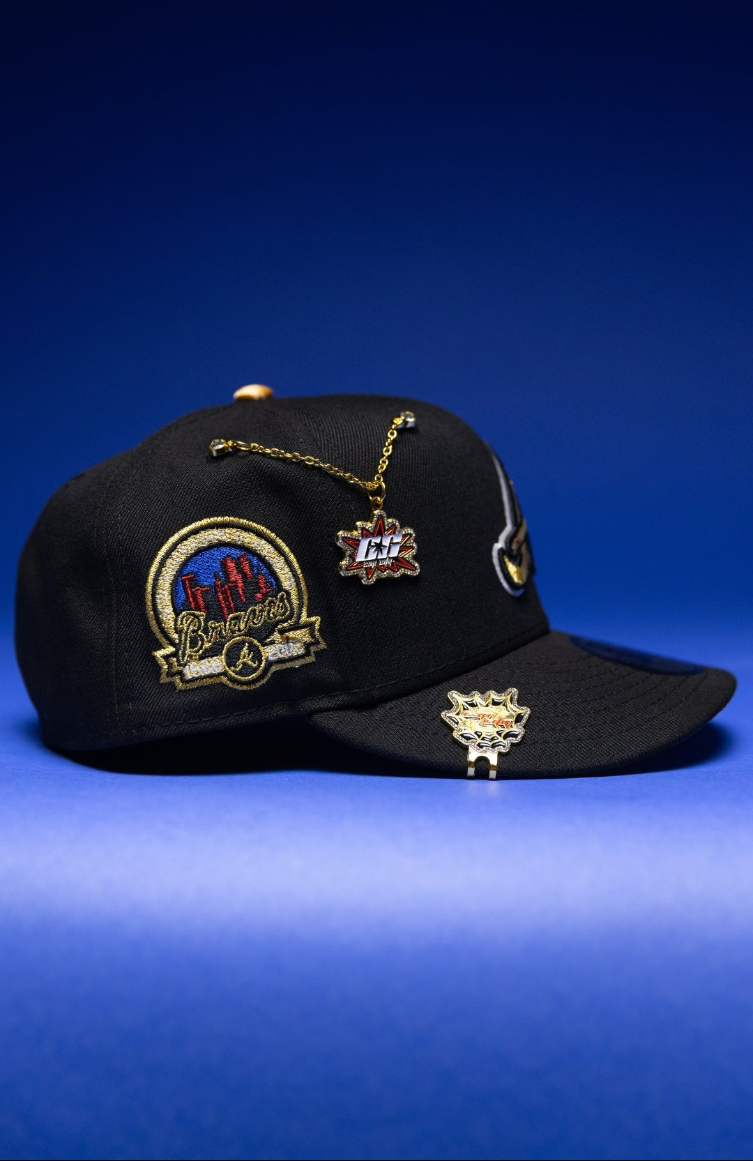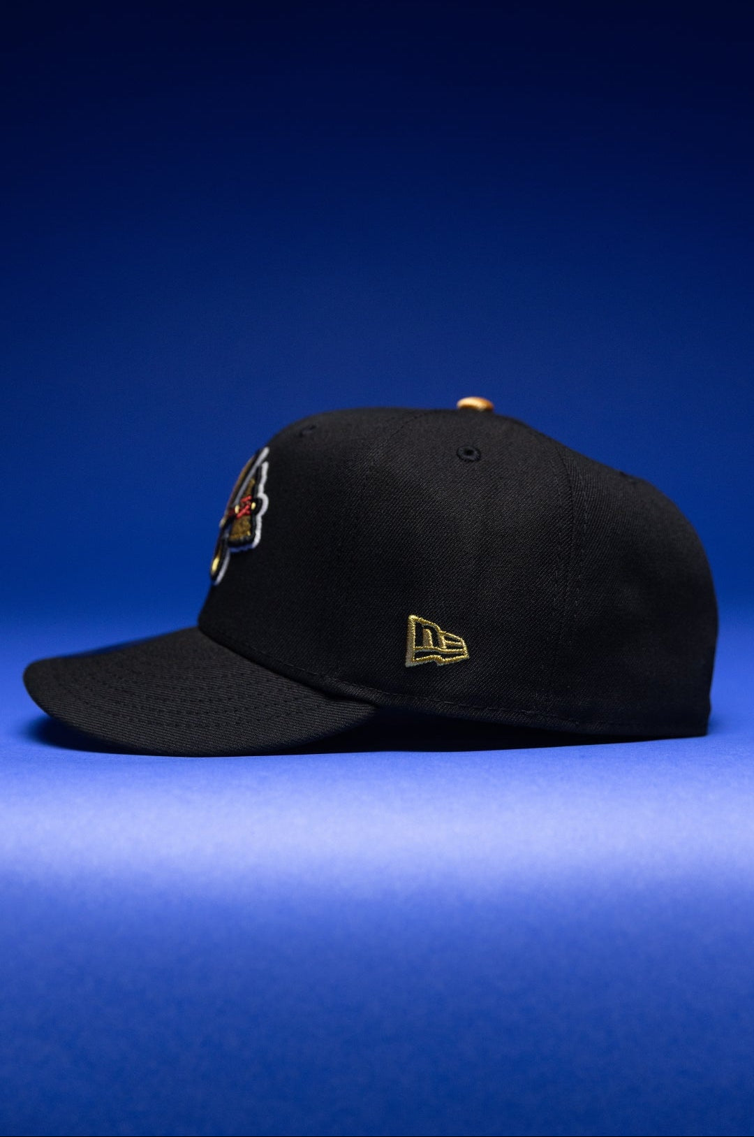 NEW ERA EXCLUSIVE 59FIFTY BLACK ATLANTA BRAVES W/ ANNIVERSARY SIDE PATCH