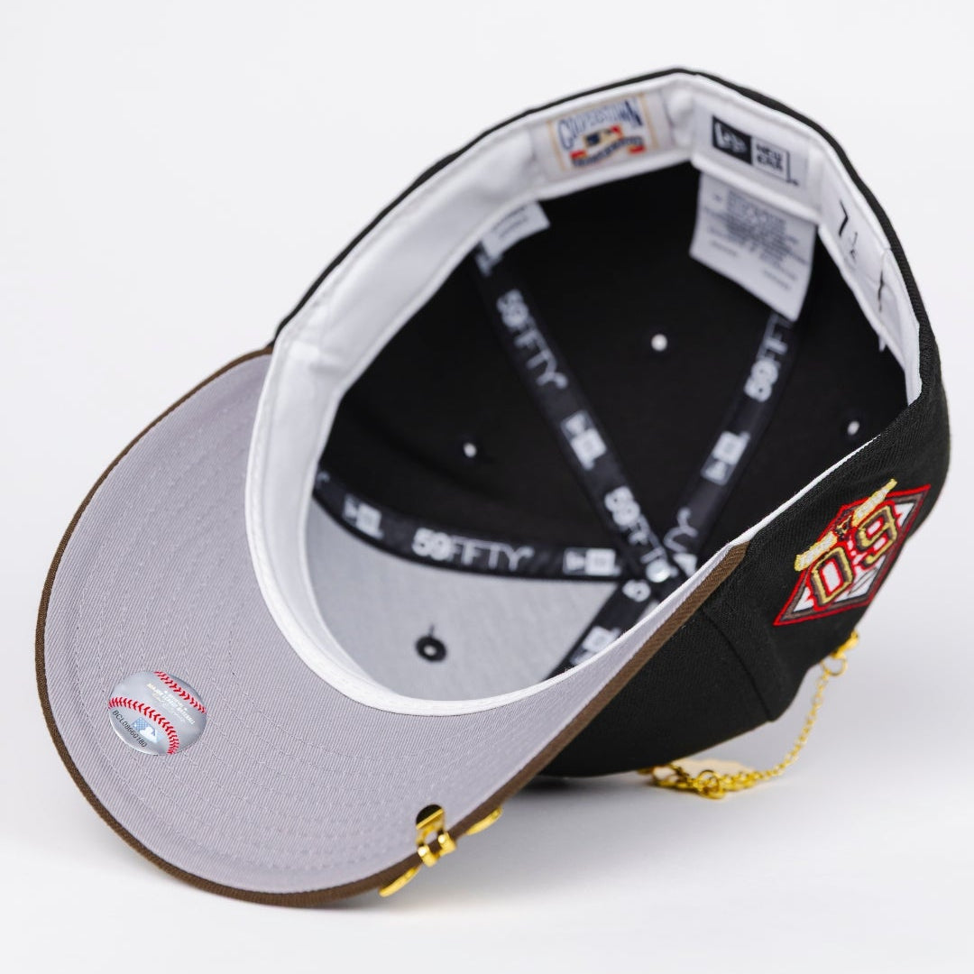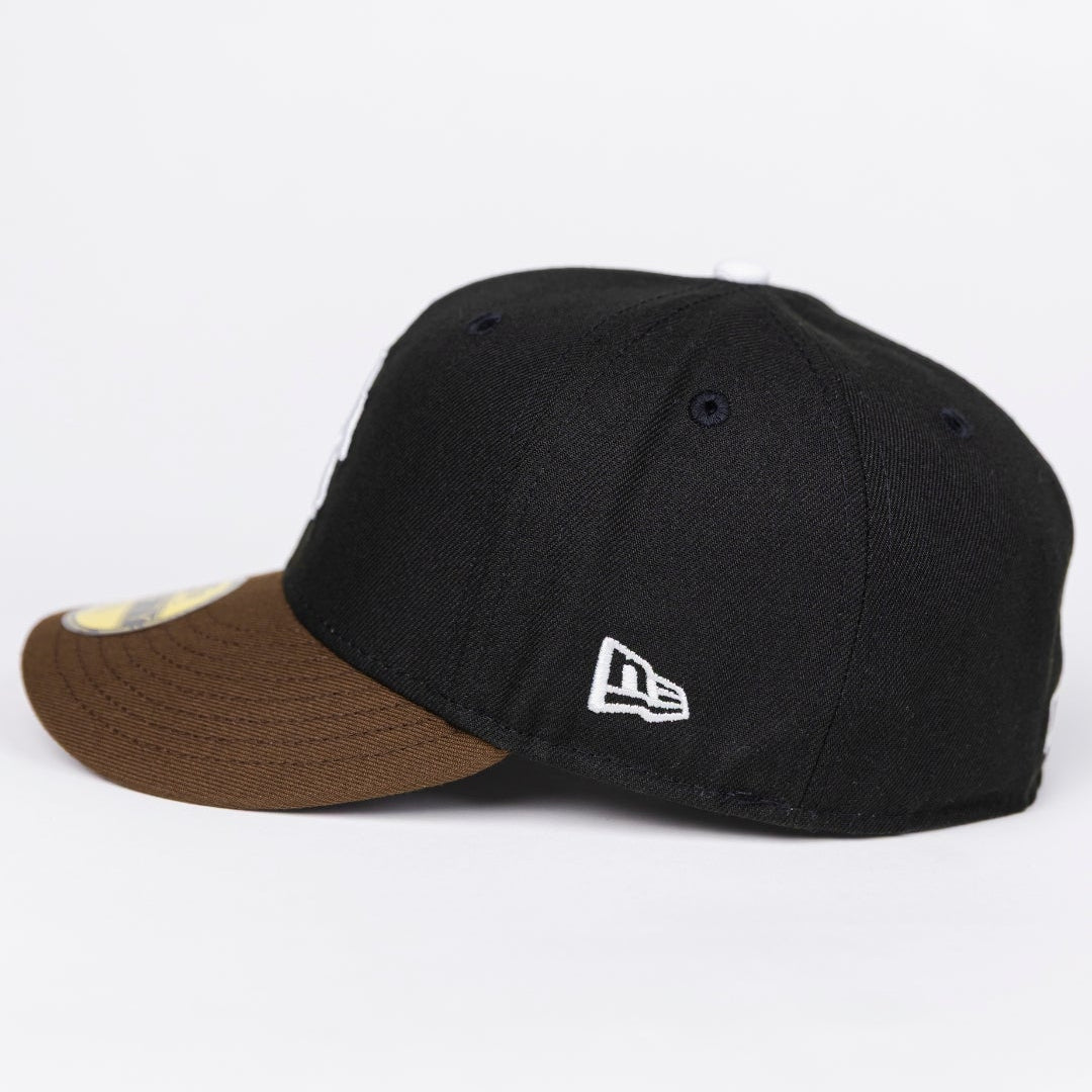 NEW ERA EXCLUSIVE 59FIFTY BLACK/ BROWN LOS ANGELES ANGELS W/ 60TH ANNIVERSARY SIDE PATCH