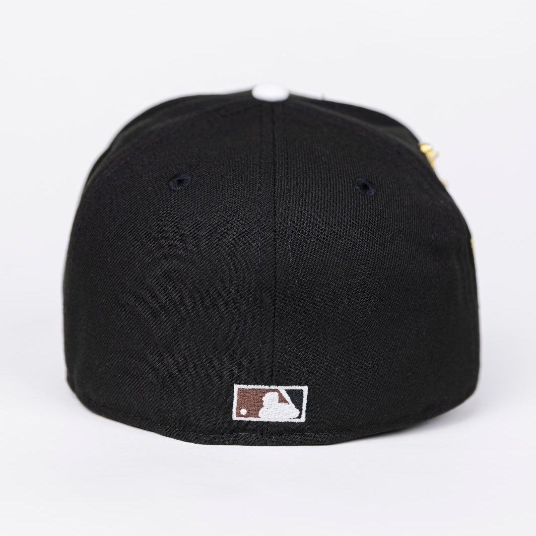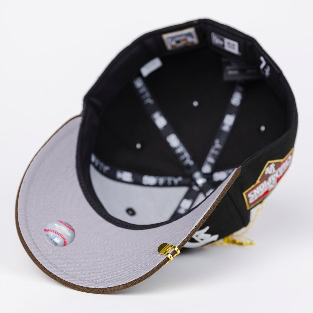 NEW ERA EXCLUSIVE 59FIFTY BLACK/ BROWN LOS ANGELES DODGERS SCRIPT W/ WORLD SERIES CHAMPIONS SIDE PATCH