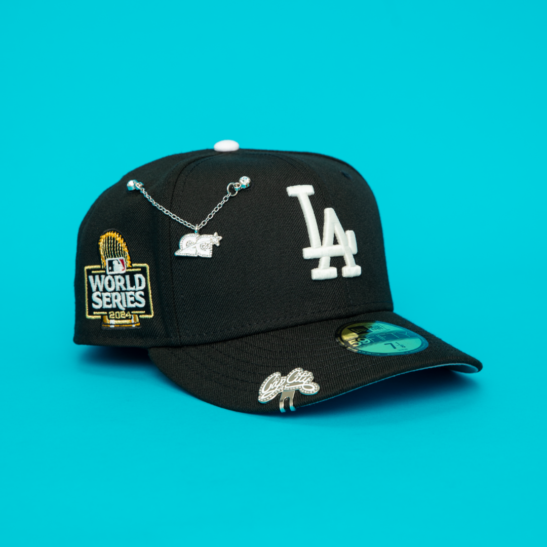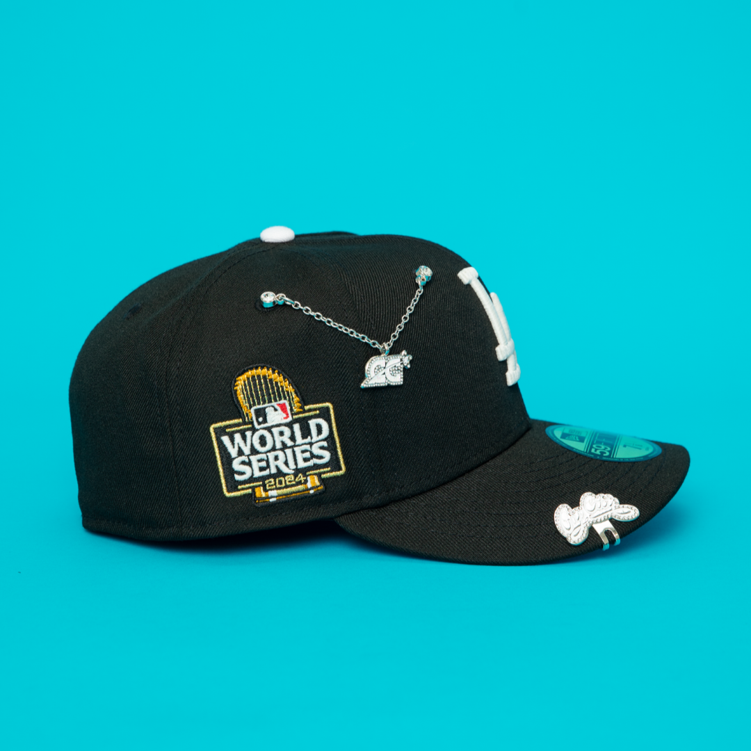 NEW ERA EXCLUSIVE 59FIFTY BLACK LOS ANGELES DODGERS W/ 2024 WORLD SERIES SIDE PATCH