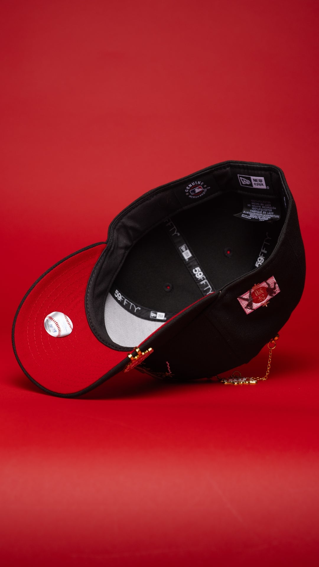 NEW ERA EXCLUSIVE 59FIFTY BLACK LOS ANGELES DODGERS W/ EMBROIDERY + JAPANESE FLAG SIDE PATCH