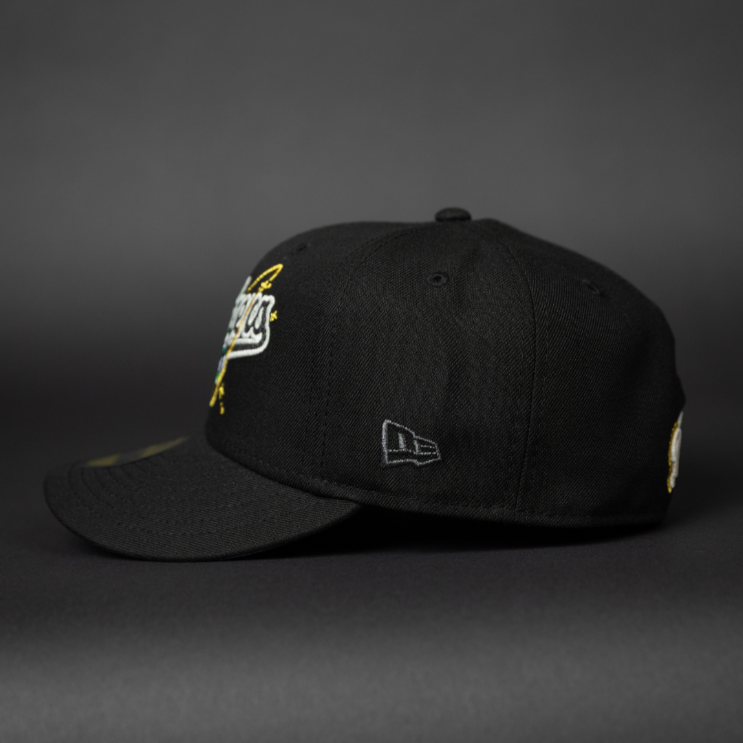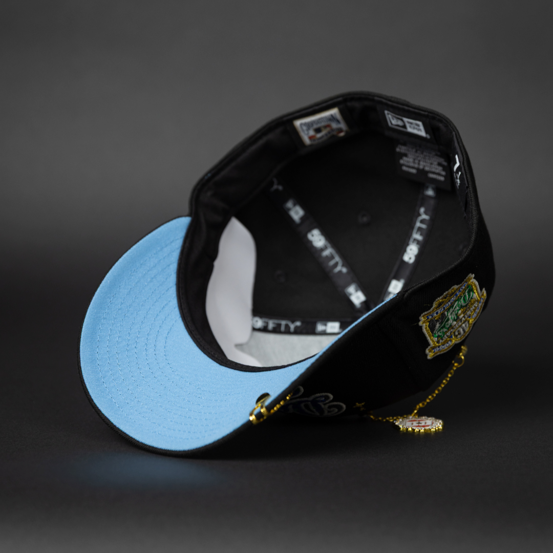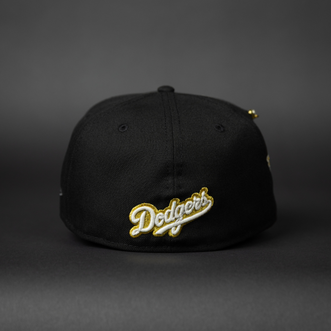 NEW ERA EXCLUSIVE 59FIFTY BLACK LOS ANGELES DODGERS W/ GALAXY SCRIPT + 40TH ANNIVERSARY SIDE PATCH