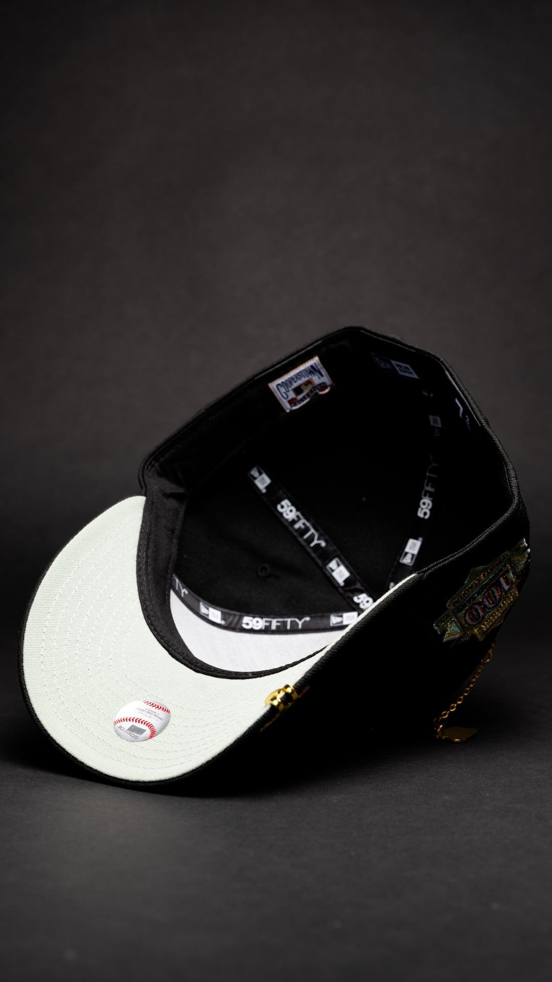 NEW ERA EXCLUSIVE 59FIFTY BLACK NEW YORK YANKEES W/ 100TH SEASON SIDE PATCH