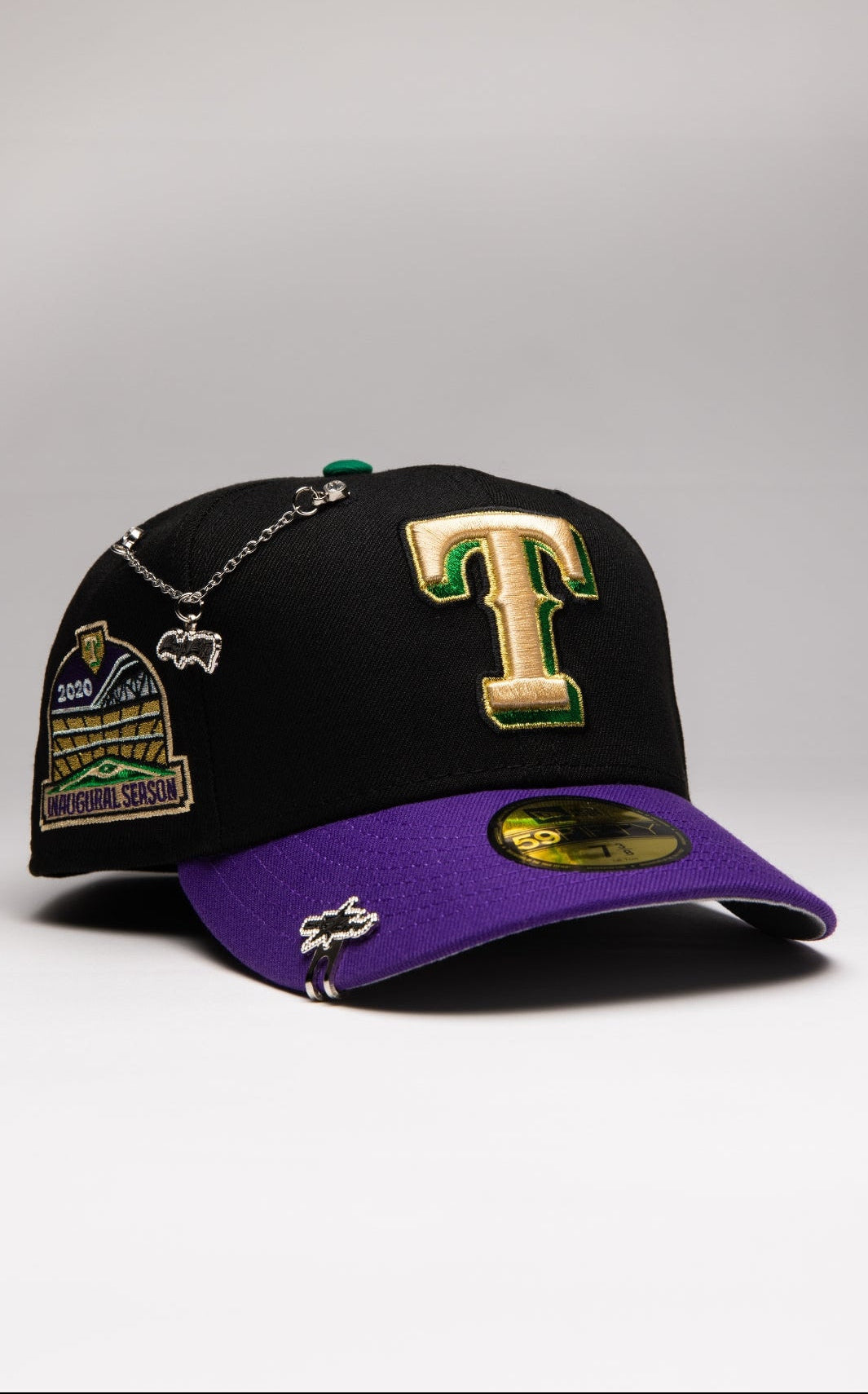 NEW ERA EXCLUSIVE 59FIFTY BLACK/PURPLE TEXAS RANGERS W/ INAUGURAL SEASON SIDE PATCH