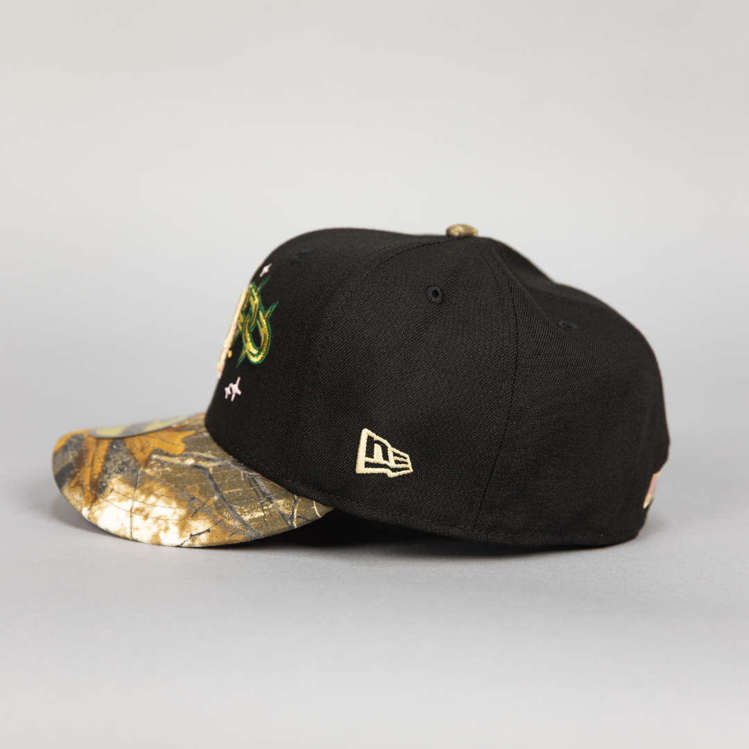 NEW ERA EXCLUSIVE 59FIFTY BLACK/ REALTREE LOS ANGELES DODGERS W/ EMBROIDERY + 50TH ANNIVERSARY SIDE PATCH