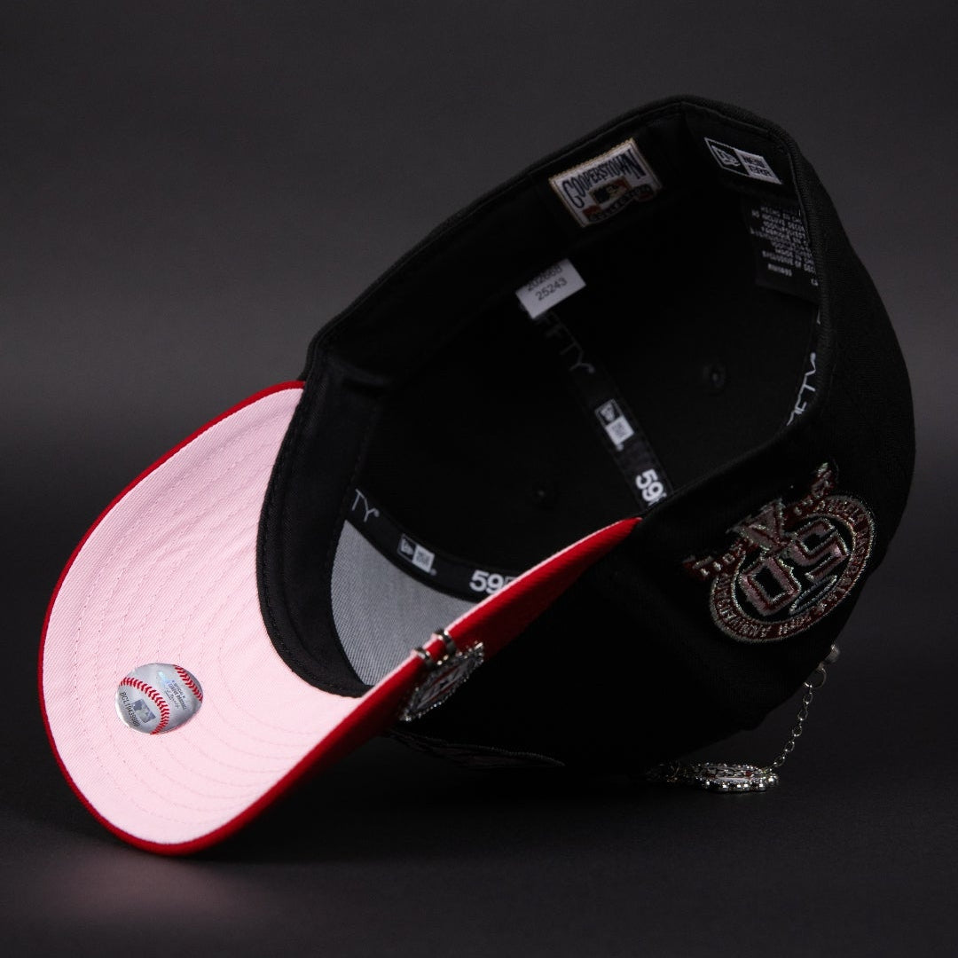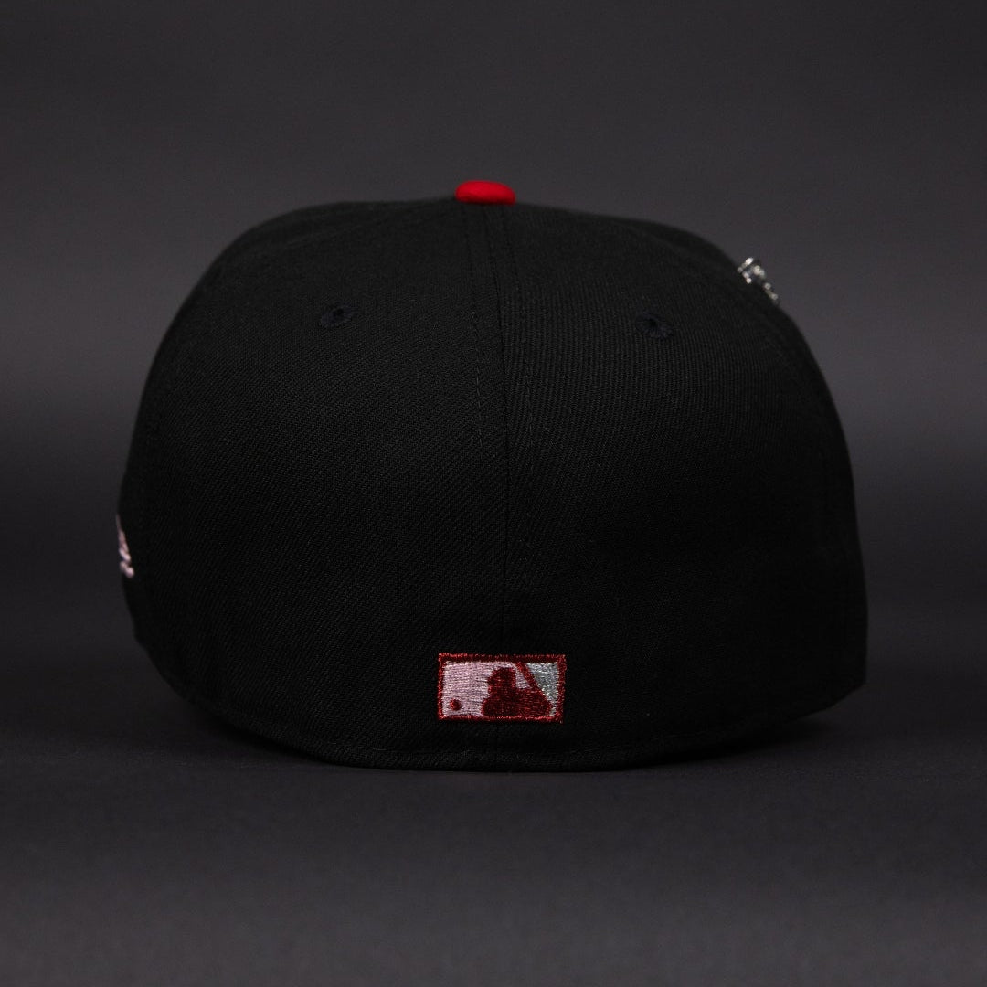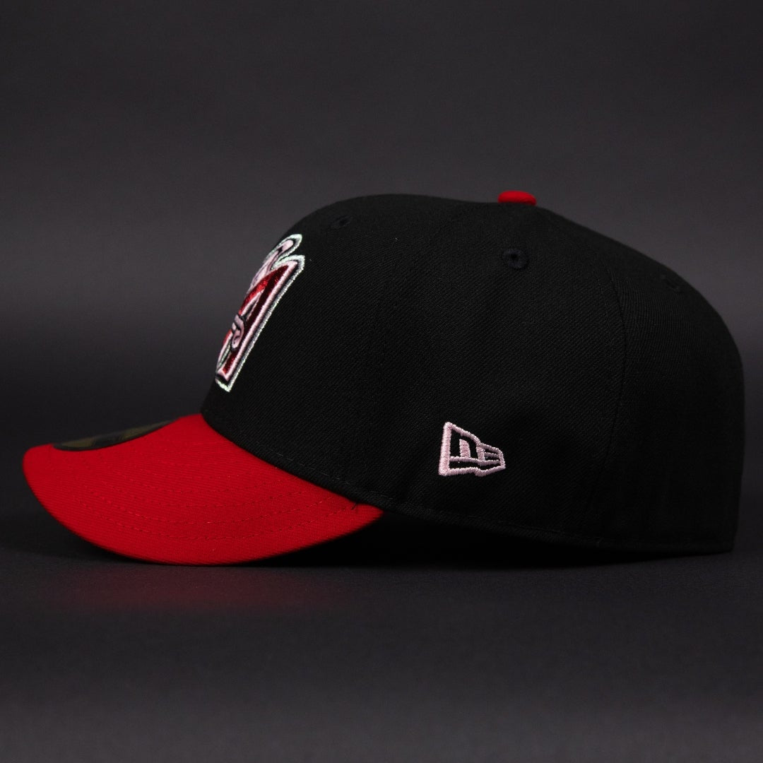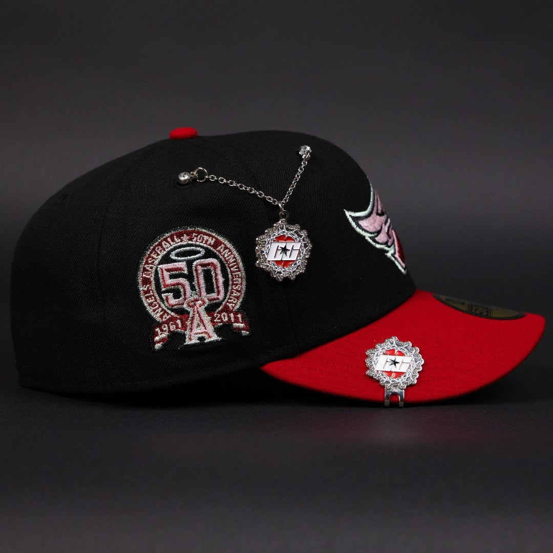 NEW ERA EXCLUSIVE 59FIFTY BLACK/ RED ANAHEIM ANGELS W/ 50TH ANNIVERSARY SIDE PATCH