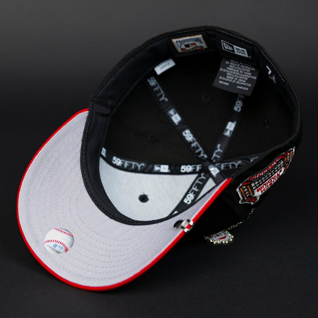 NEW ERA EXCLUSIVE 59FIFTY BLACK/ RED ST LOUIS CARDINALS W/ BUSCH STADIUM SIDE PATCH
