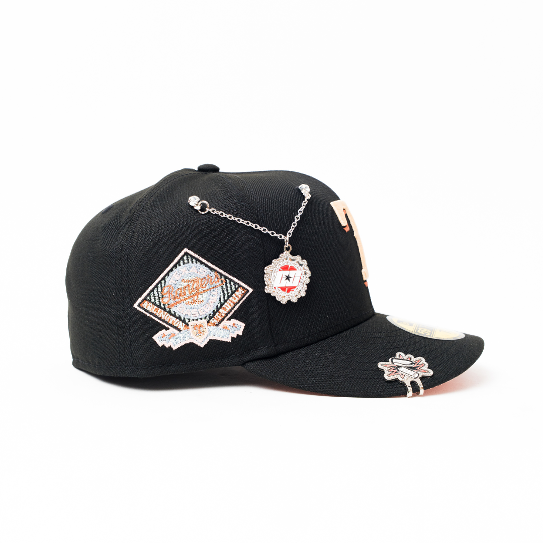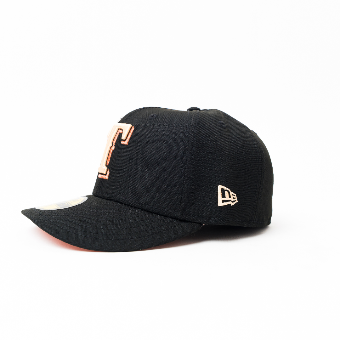 NEW ERA EXCLUSIVE 59FIFTY BLACK TEXAS RANGERS W/ ARLINGTON STADIUM SIDE PATCH