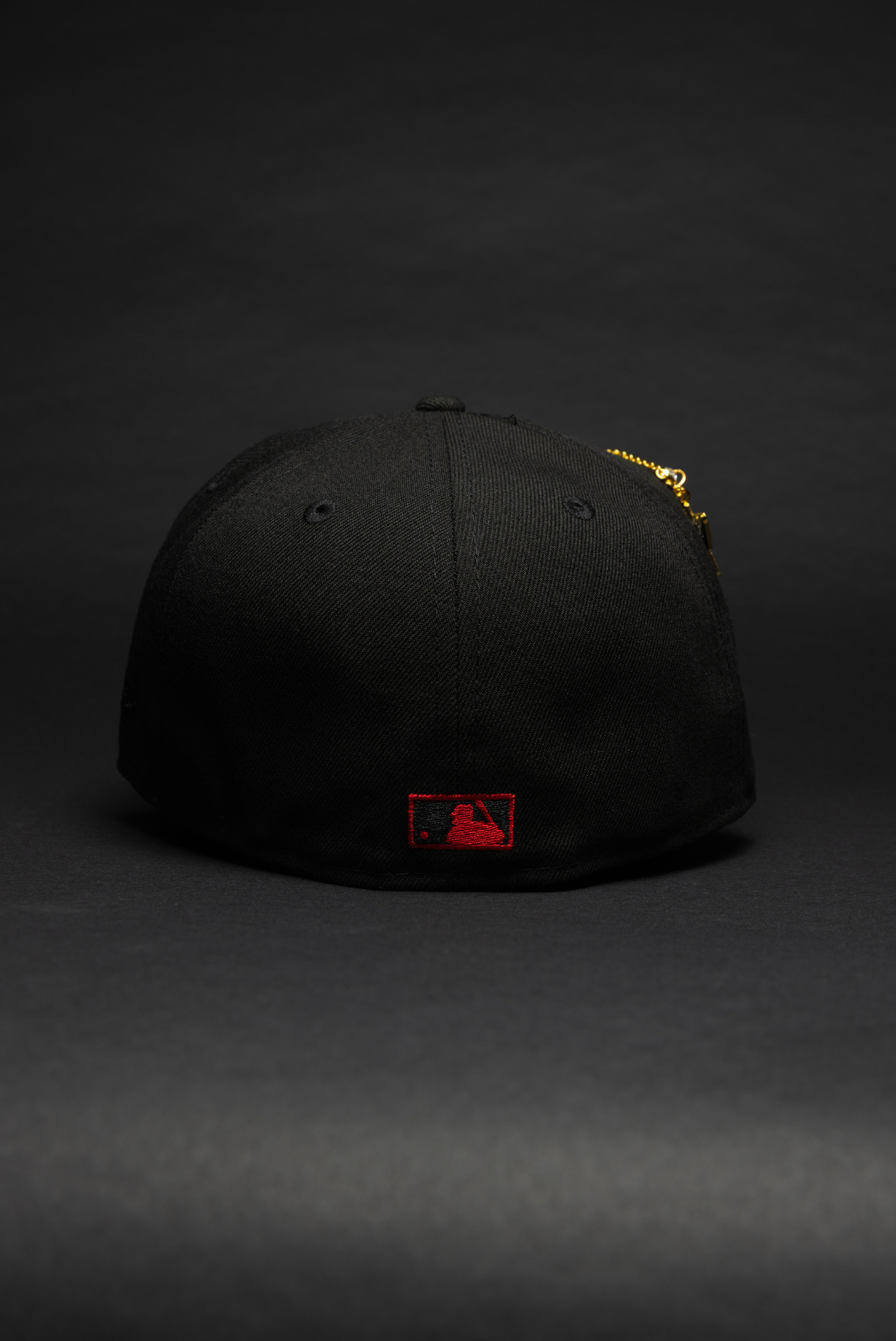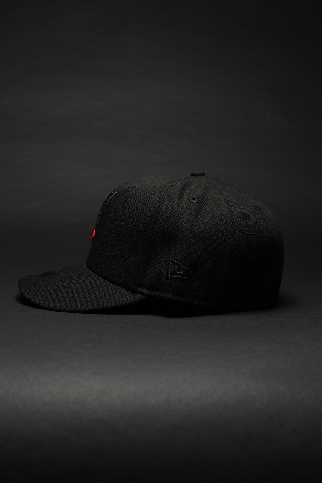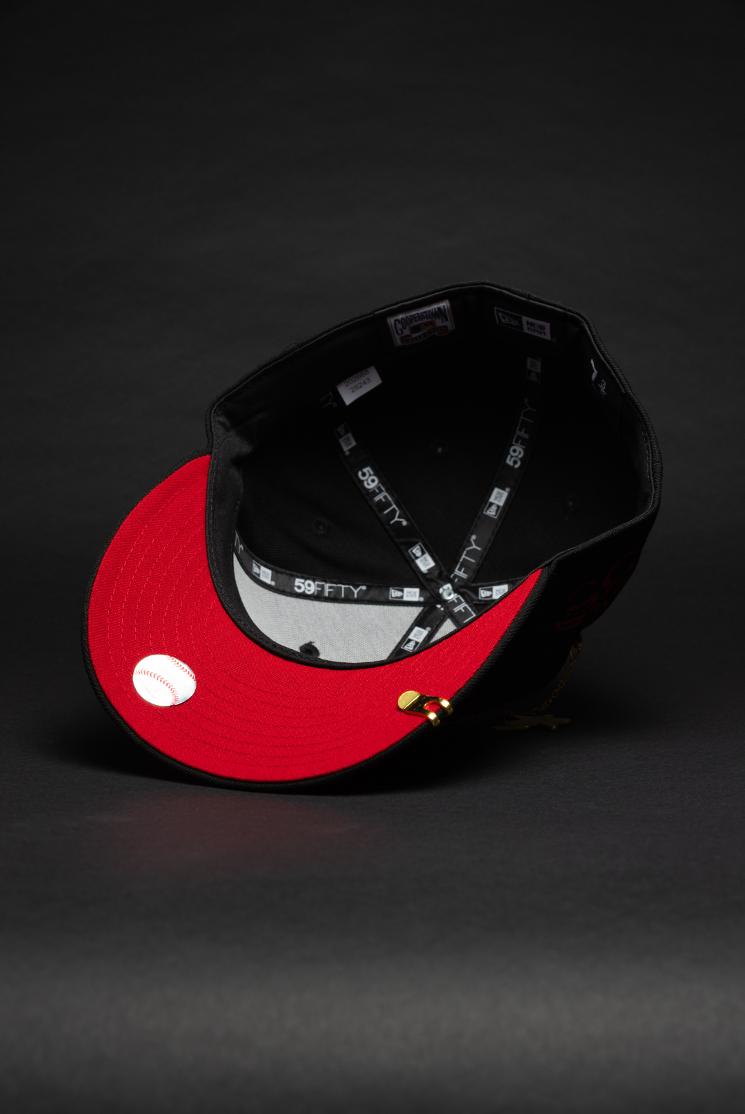 NEW ERA EXCLUSIVE 59FIFTY BLACK UPSIDE DOWN ANAHEIM ANGELS W/ 35TH ANNUVERSARY SIDE PATCH