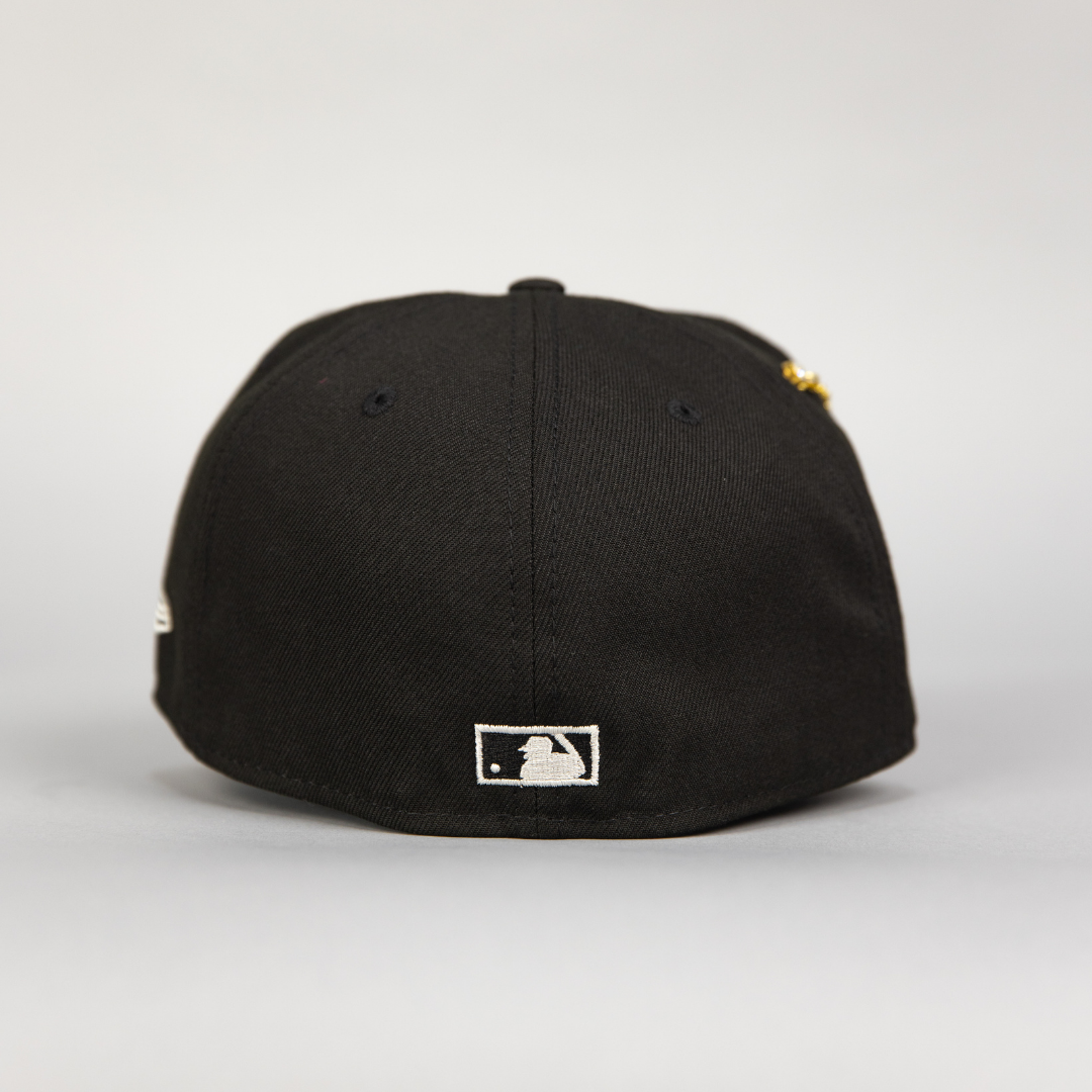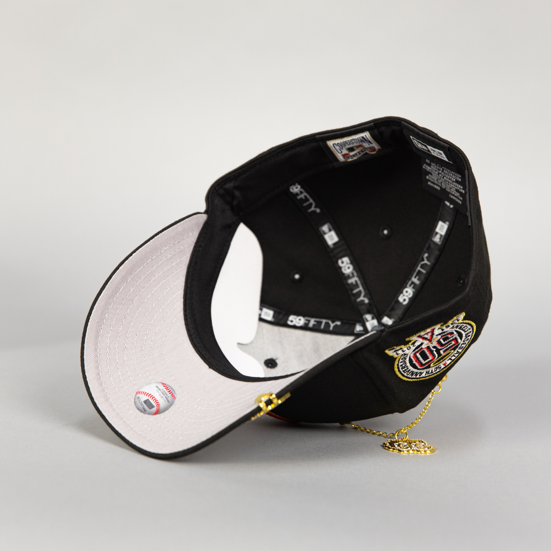 NEW ERA EXCLUSIVE 59FIFTY BLACK UPSIDE DOWN ANAHEIM ANGELS W/ 50TH ANNIVERSARY SIDE PATCH