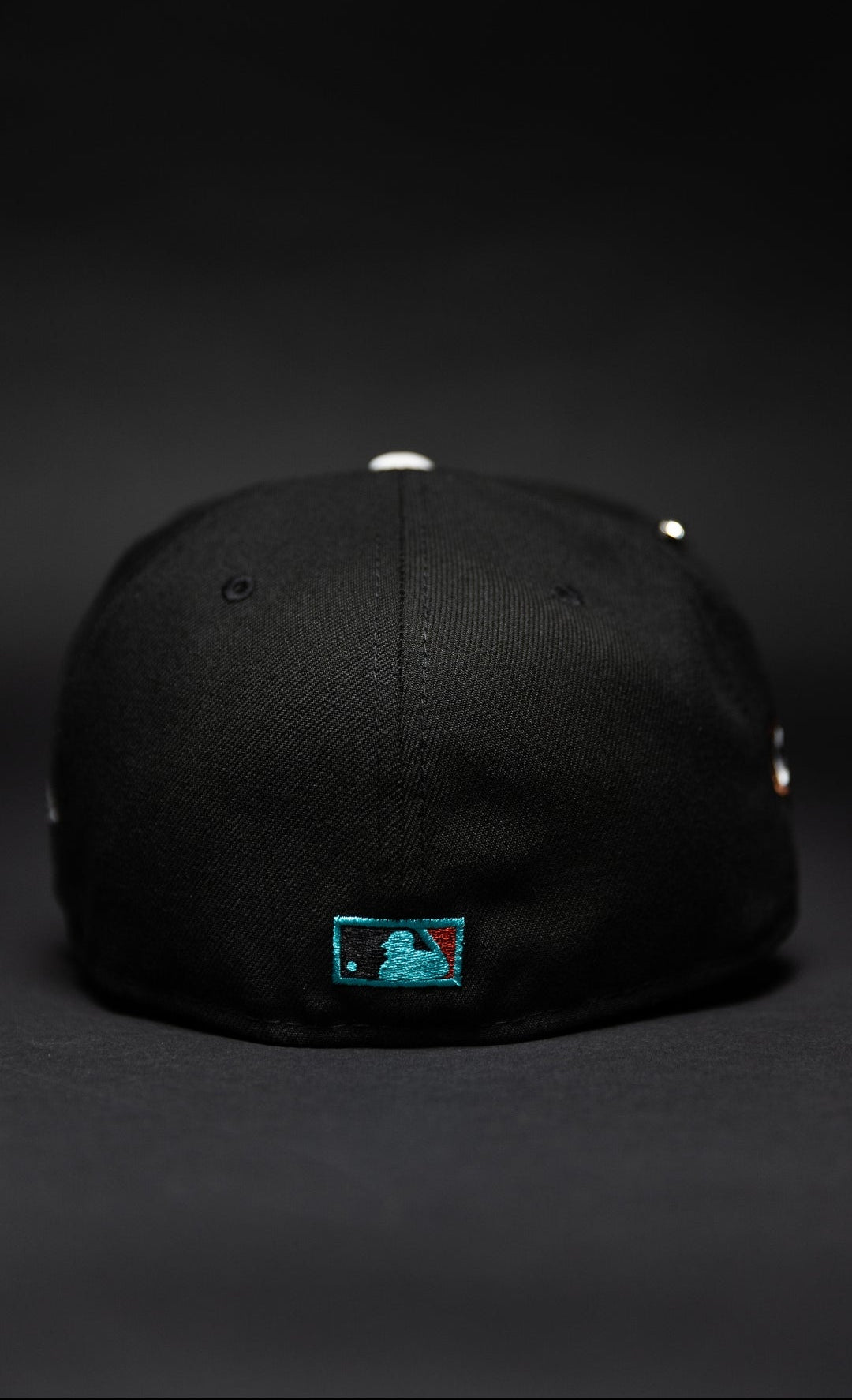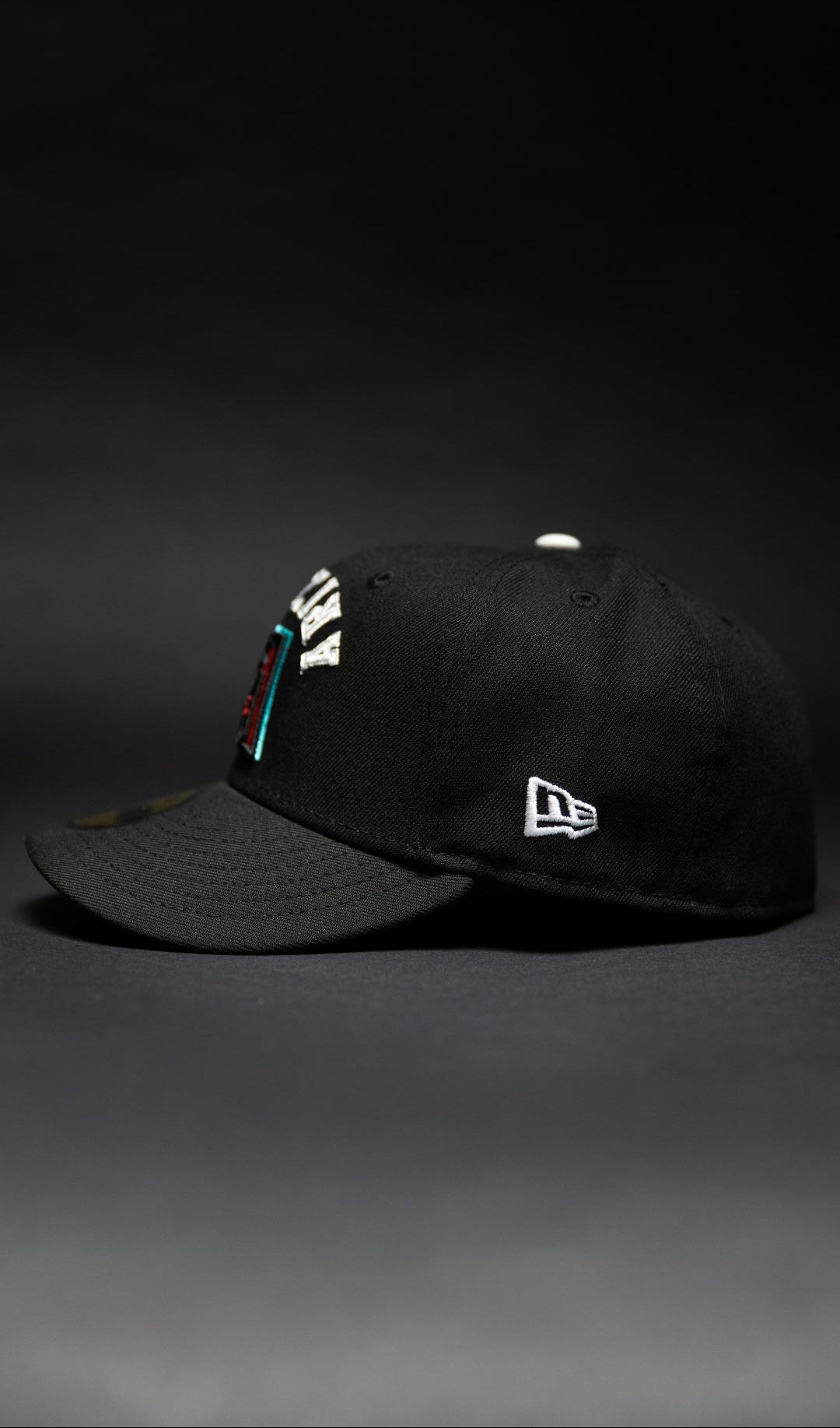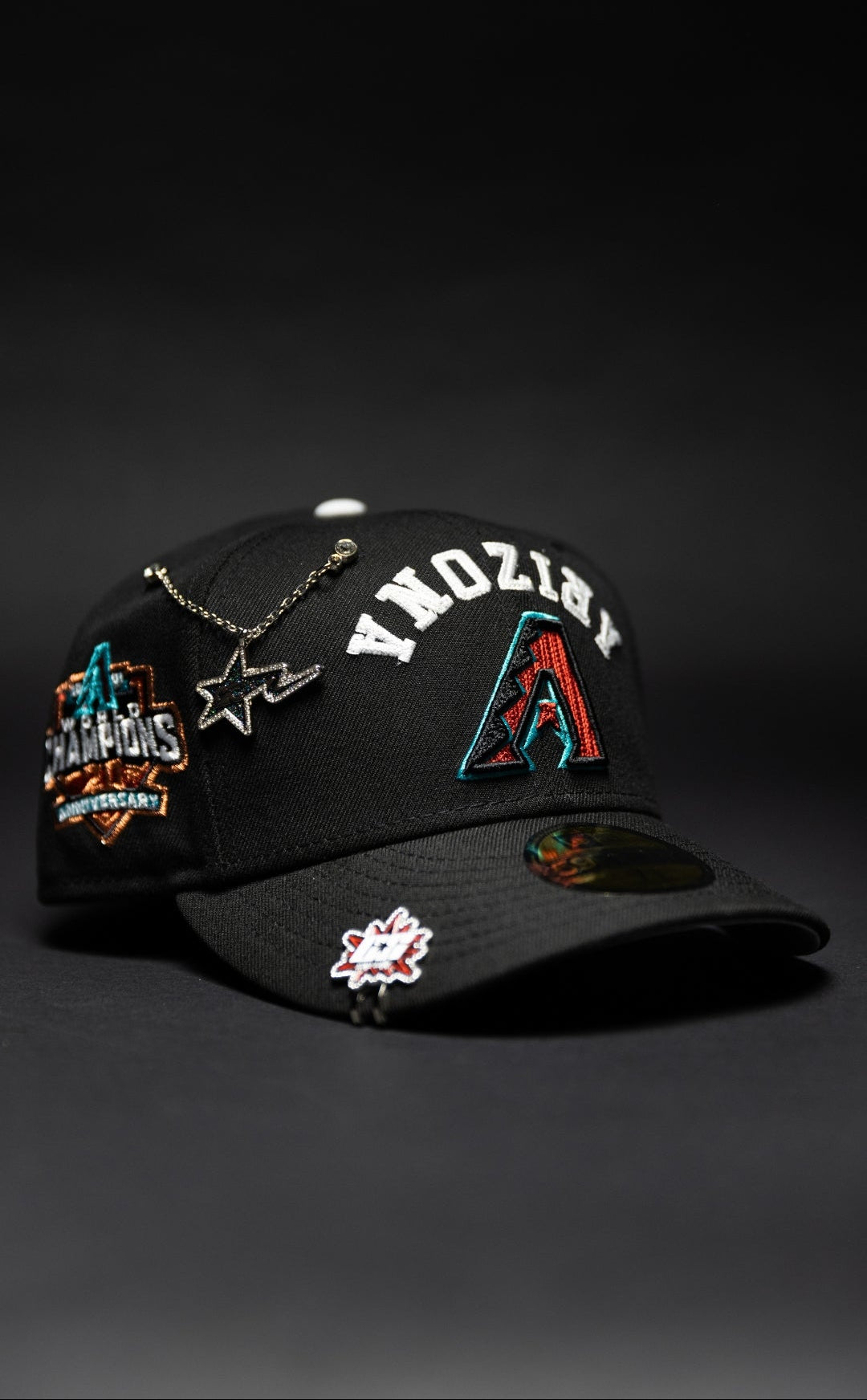 NEW ERA EXCLUSIVE 59FIFTY BLACK UPSIDE DOWN ARIZONA DIAMONDBACKS W/ WORLD CHAMPIONS SIDE PATCH