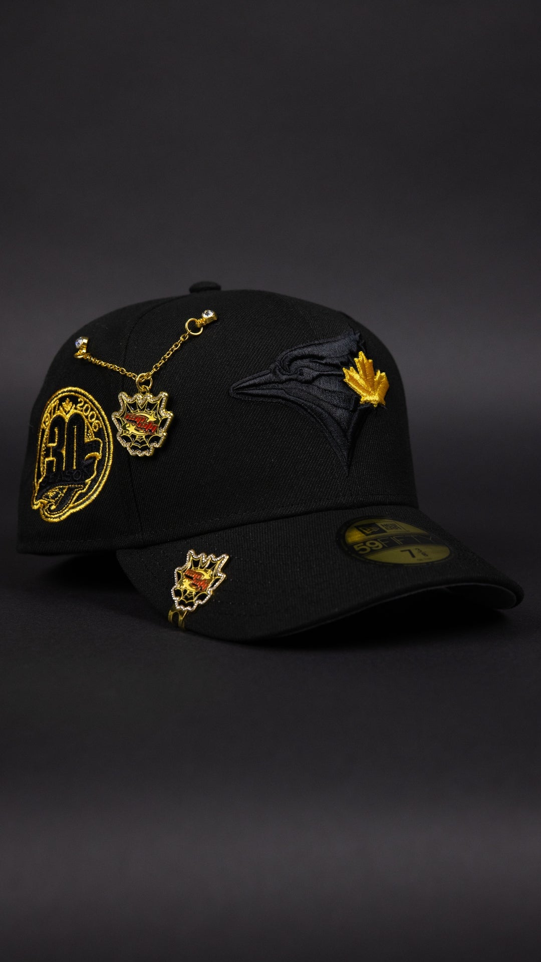 NEW ERA EXCLUSIVE 59FIFTY BLACKED OUT TORONTO BLUE JAYS W/ 30TH SEASON SIDE PATCH