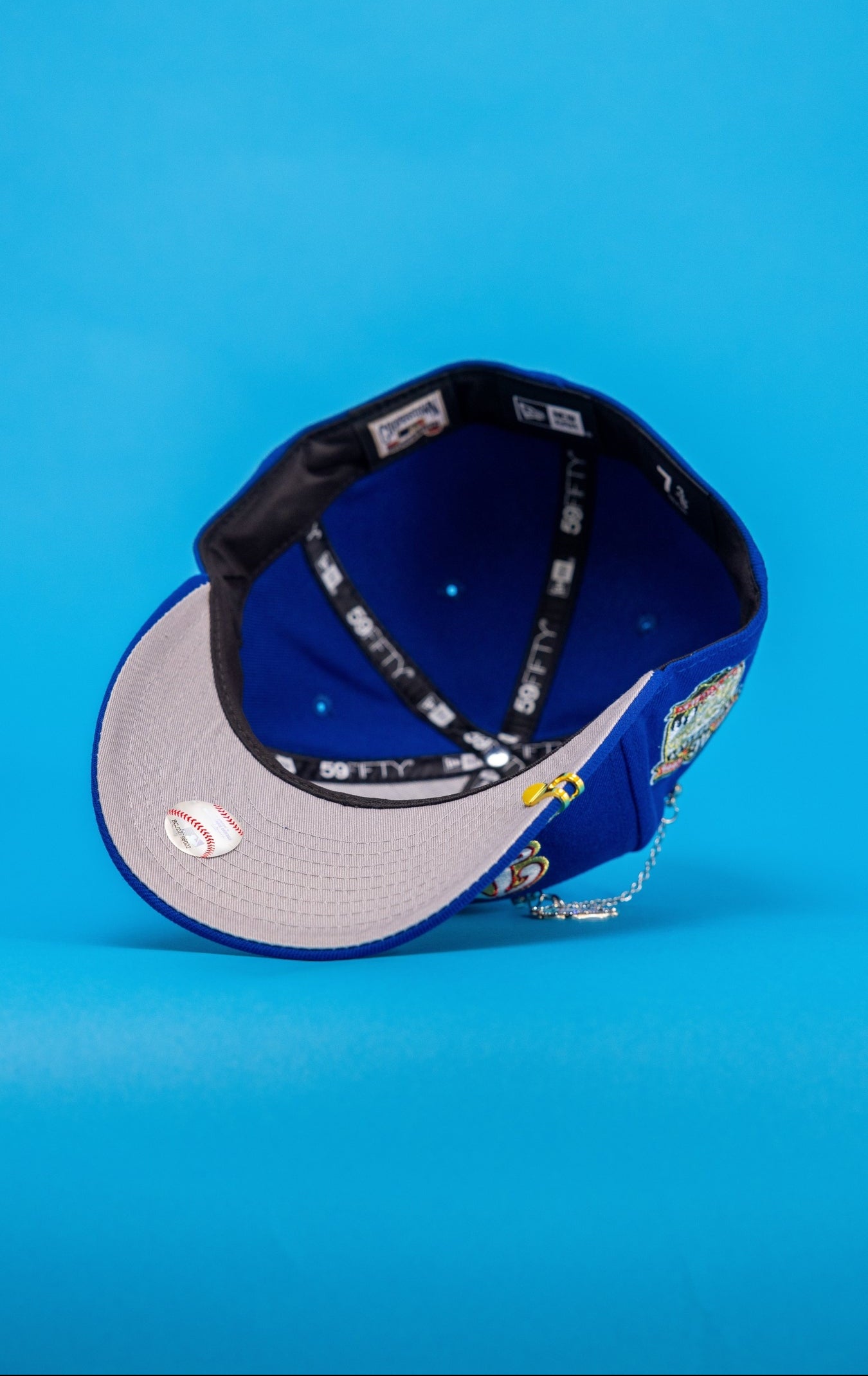 NEW ERA EXCLUSIVE 59FIFTY BLUE LOS ANGELES DODGERS SCRIPT W/ 40TH ANNIVERSARY SIDE PATCH