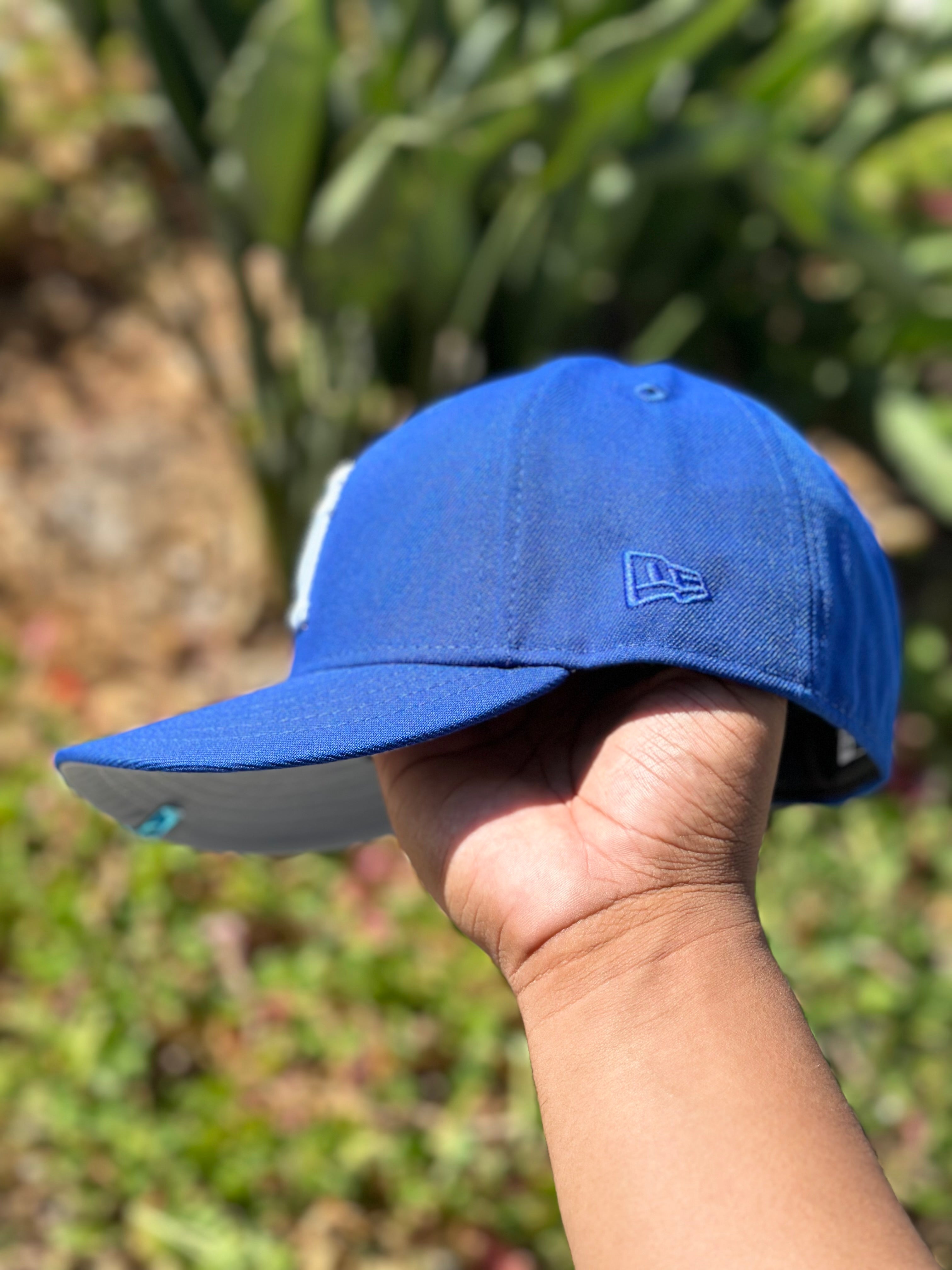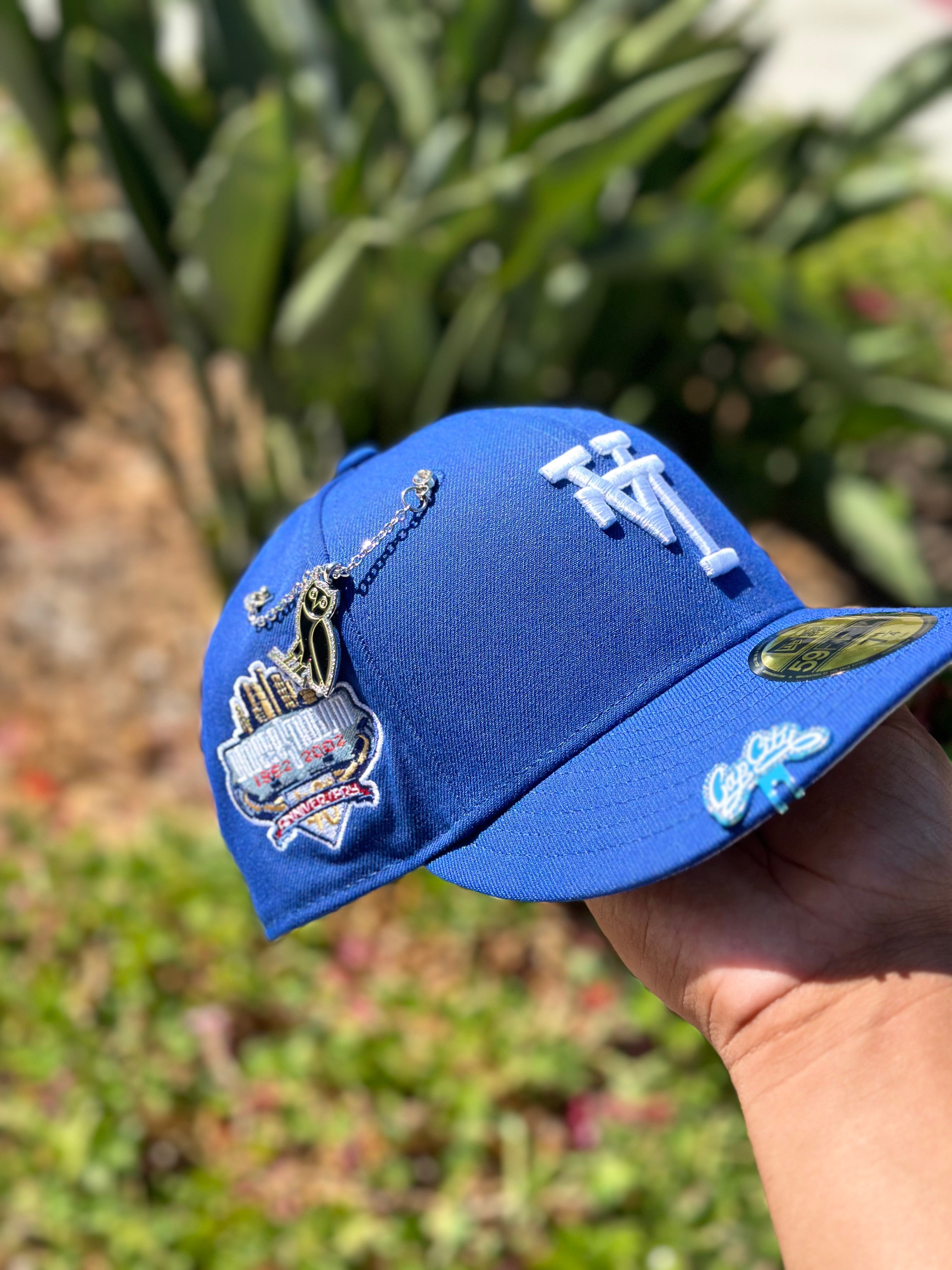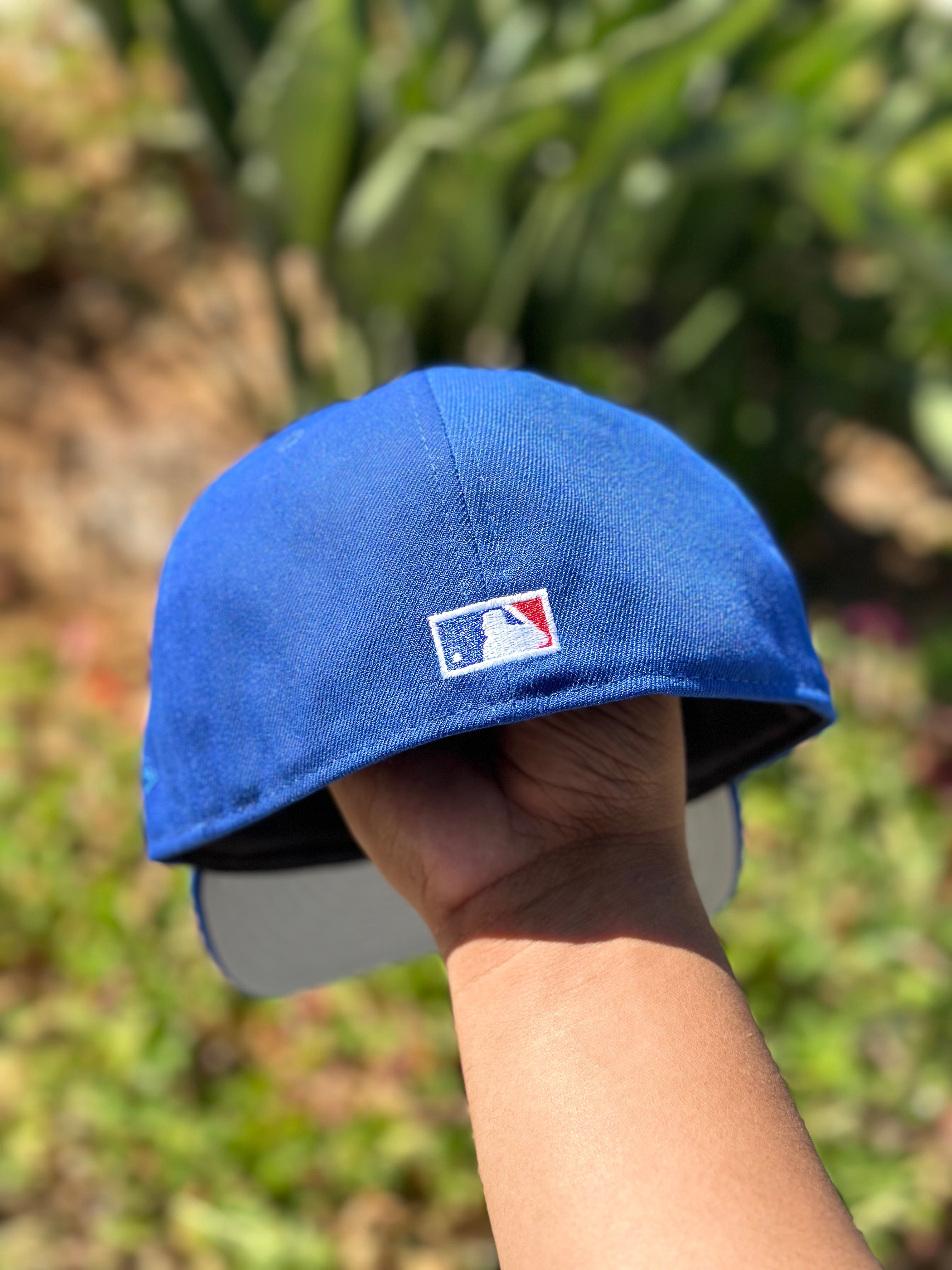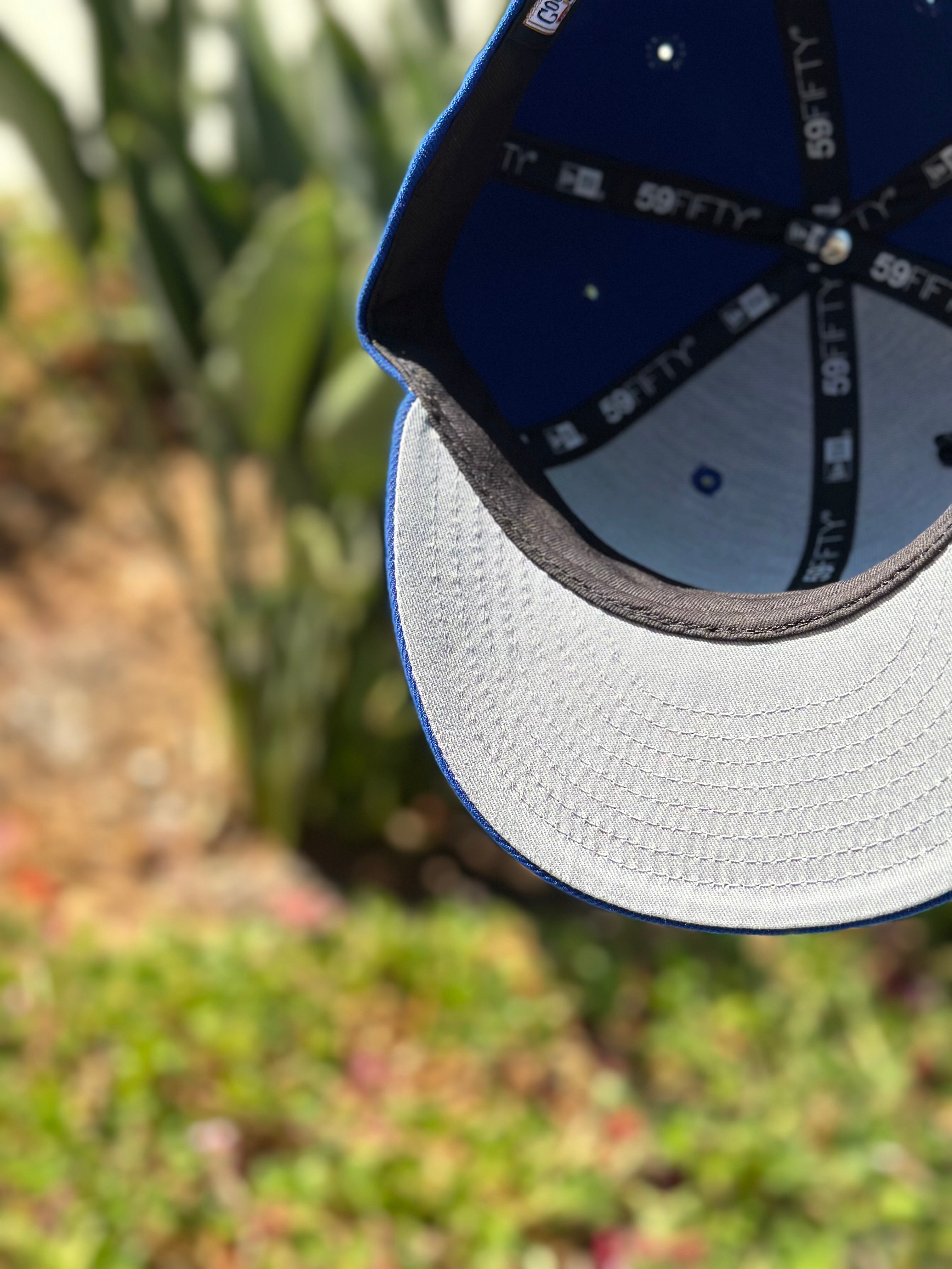 NEW ERA EXCLUSIVE 59FIFTY BLUE UPSIDE DOWN LOS ANGELES DODGERS W/ 40TH ANNIVERSARY SIDE PATCH