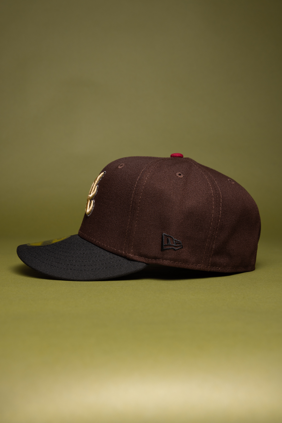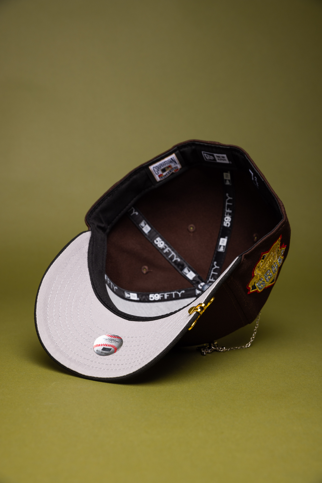 NEW ERA EXCLUSIVE 59FIFTY BROWN/BLACK ATLANTA BRAVES W/ 1999 WORLD SERIES SIDE PATCH