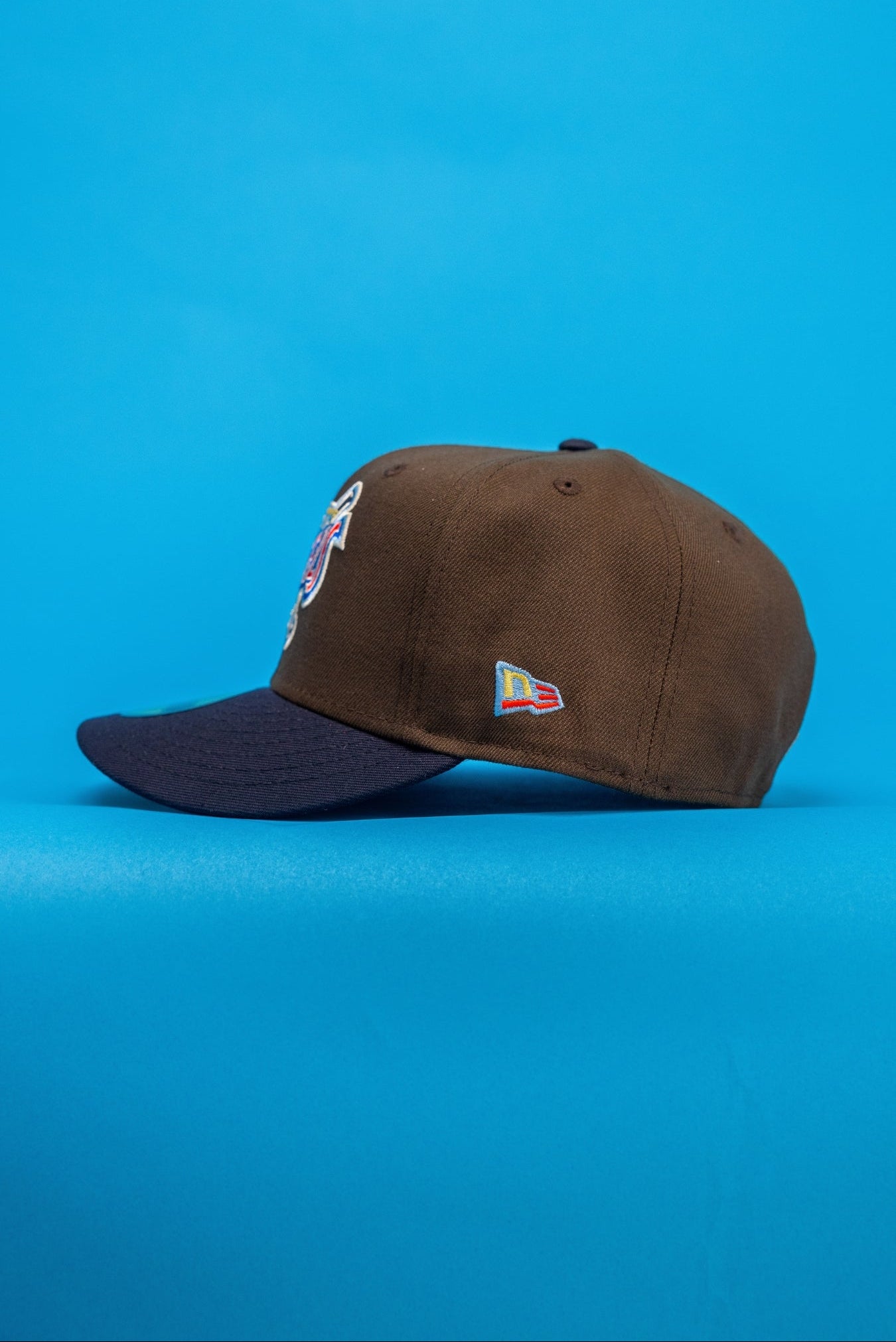 NEW ERA EXCLUSIVE 59FIFTY BROWN/NAVY ANAHEIM ANGELS W/ 40TH ANNIVERSARY SIDE PATCH