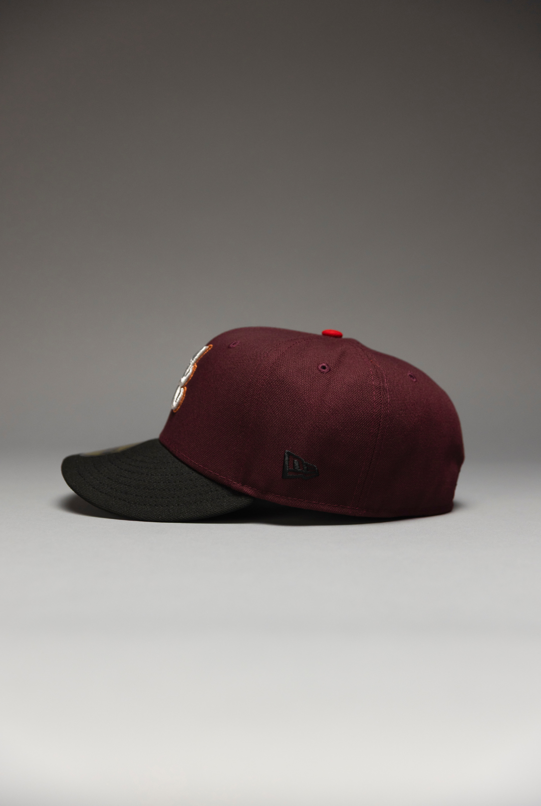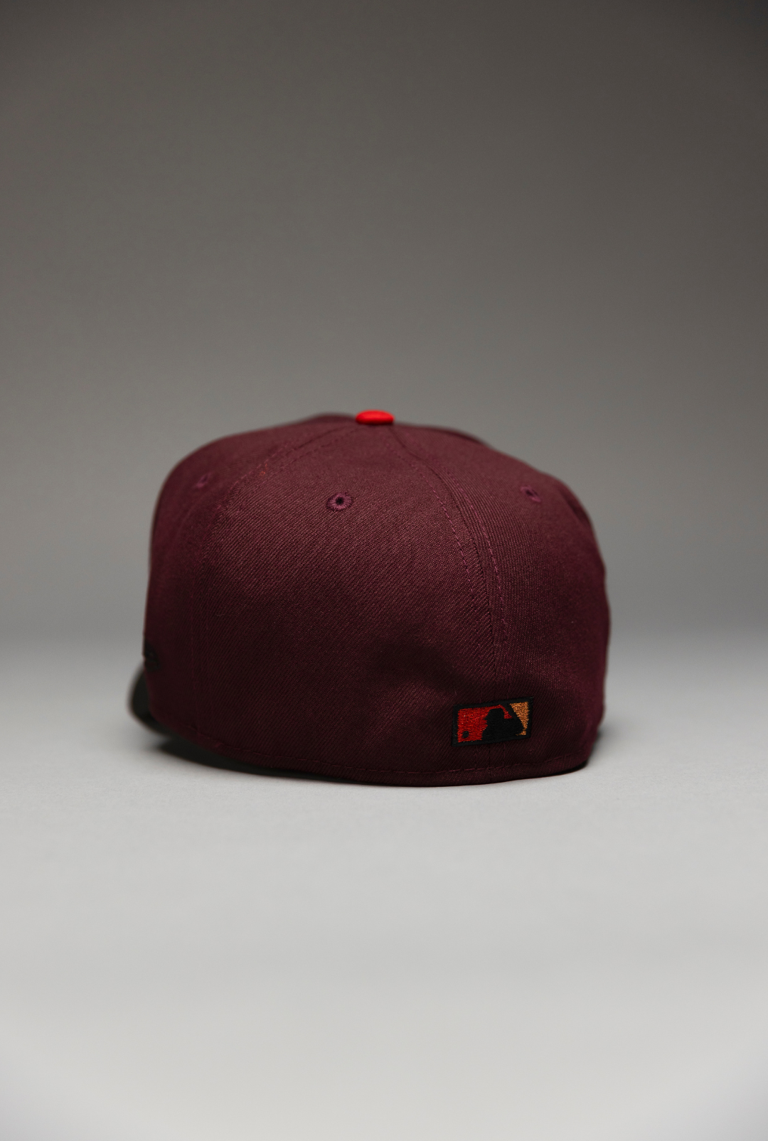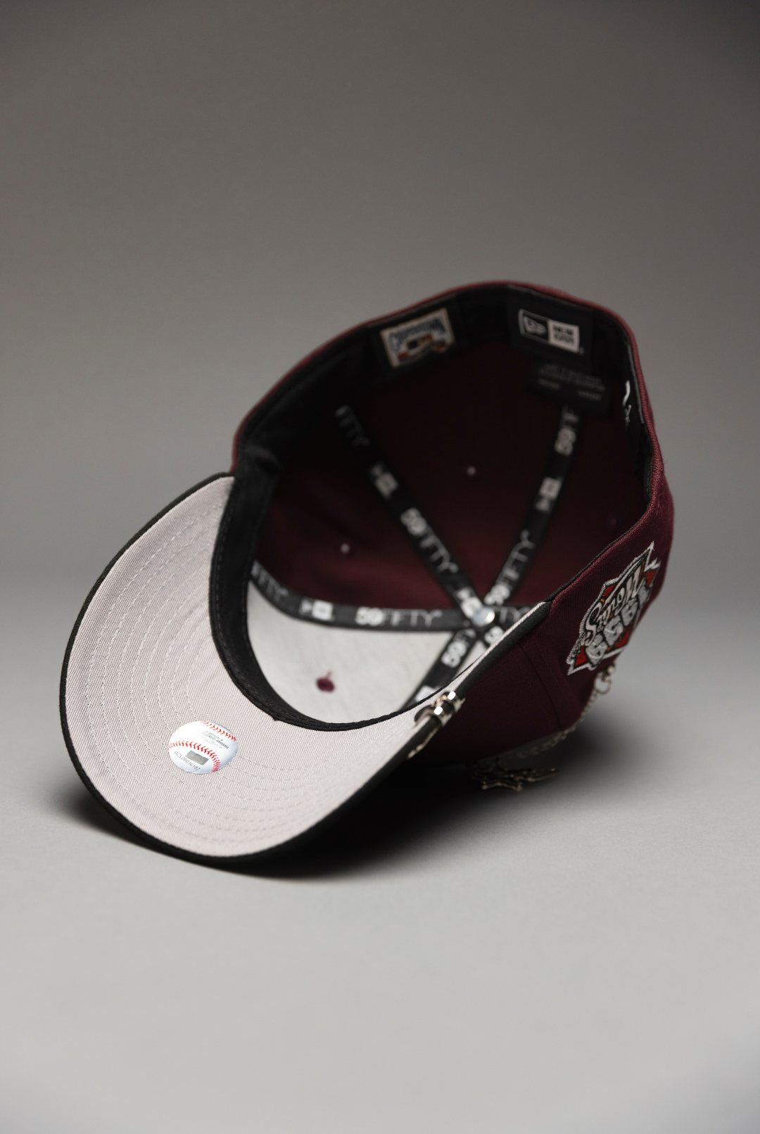 NEW ERA EXCLUSIVE 59FIFTY BURGUNDY//BLACK ATLANTA BRAVES W/ 1999 WORLD SERIES SIDE PATCH