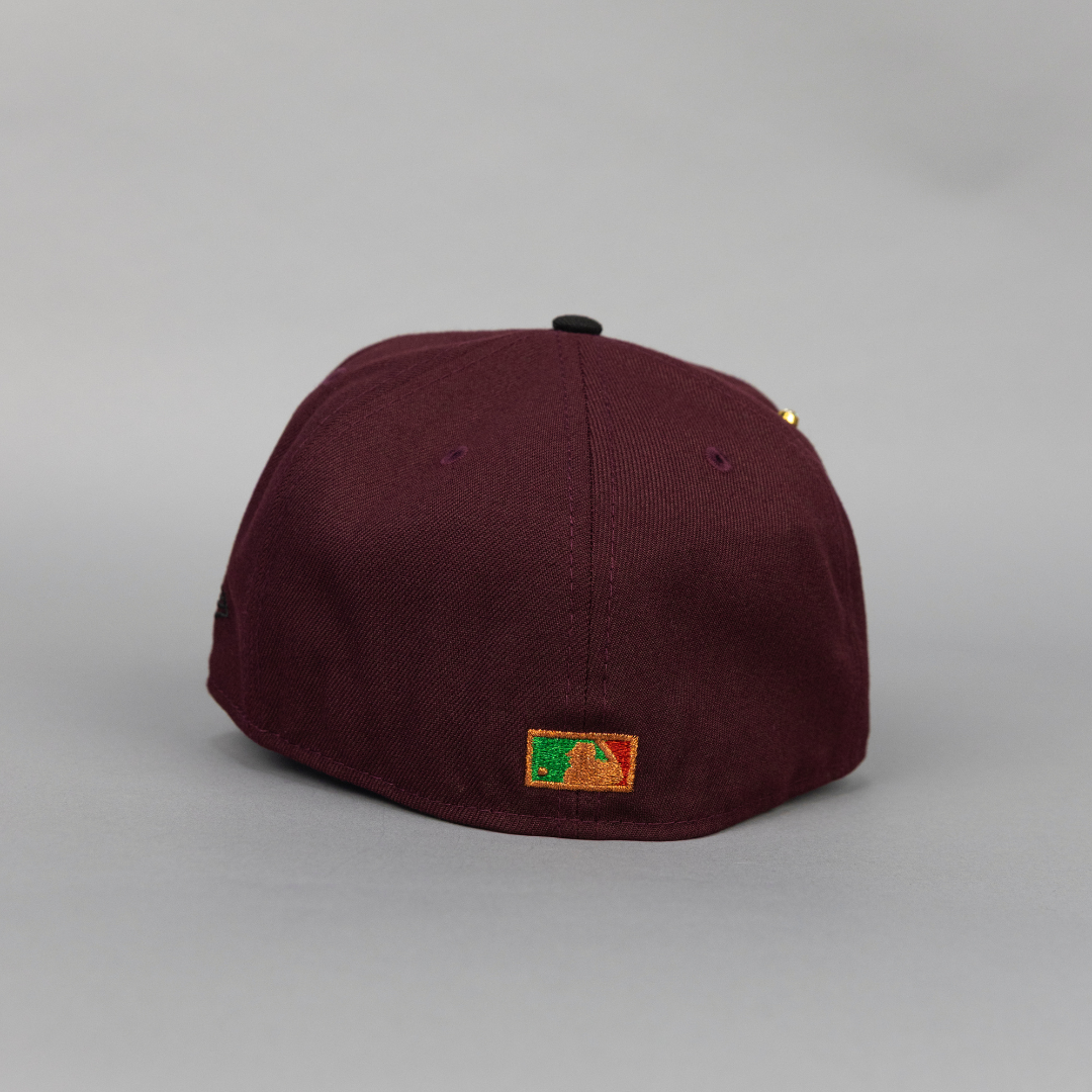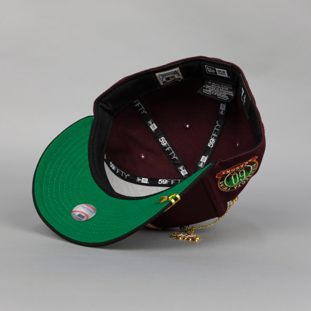 NEW ERA EXCLUSIVE 59FIFTY BURGUNDY/ BLACK MINNESOTA TWINS W/ 60TH ANNIVERSARY SIDE PATCH
