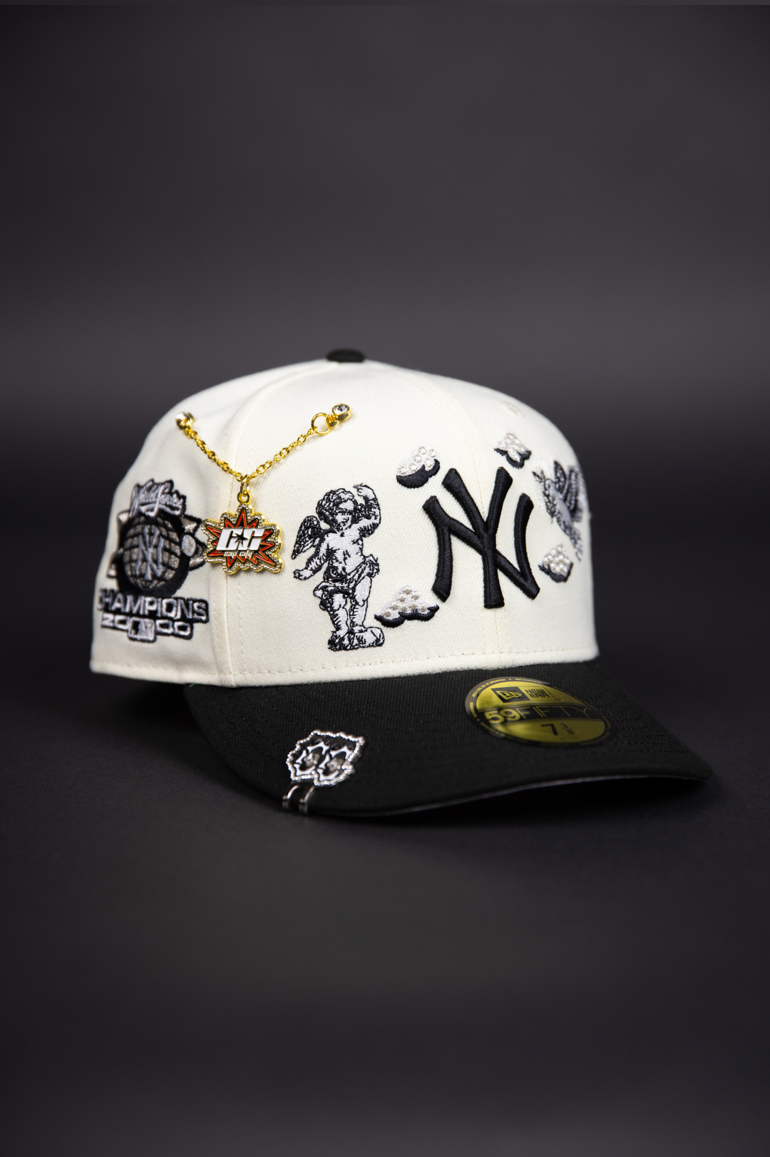 NEW ERA EXCLUSIVE 59FIFTY CHROME/ BLACK NEW YORK YANKEES "HEAVENLY CITY" W/ 2000 WORLD SERIES CHAMPIONS SIDE PATCH