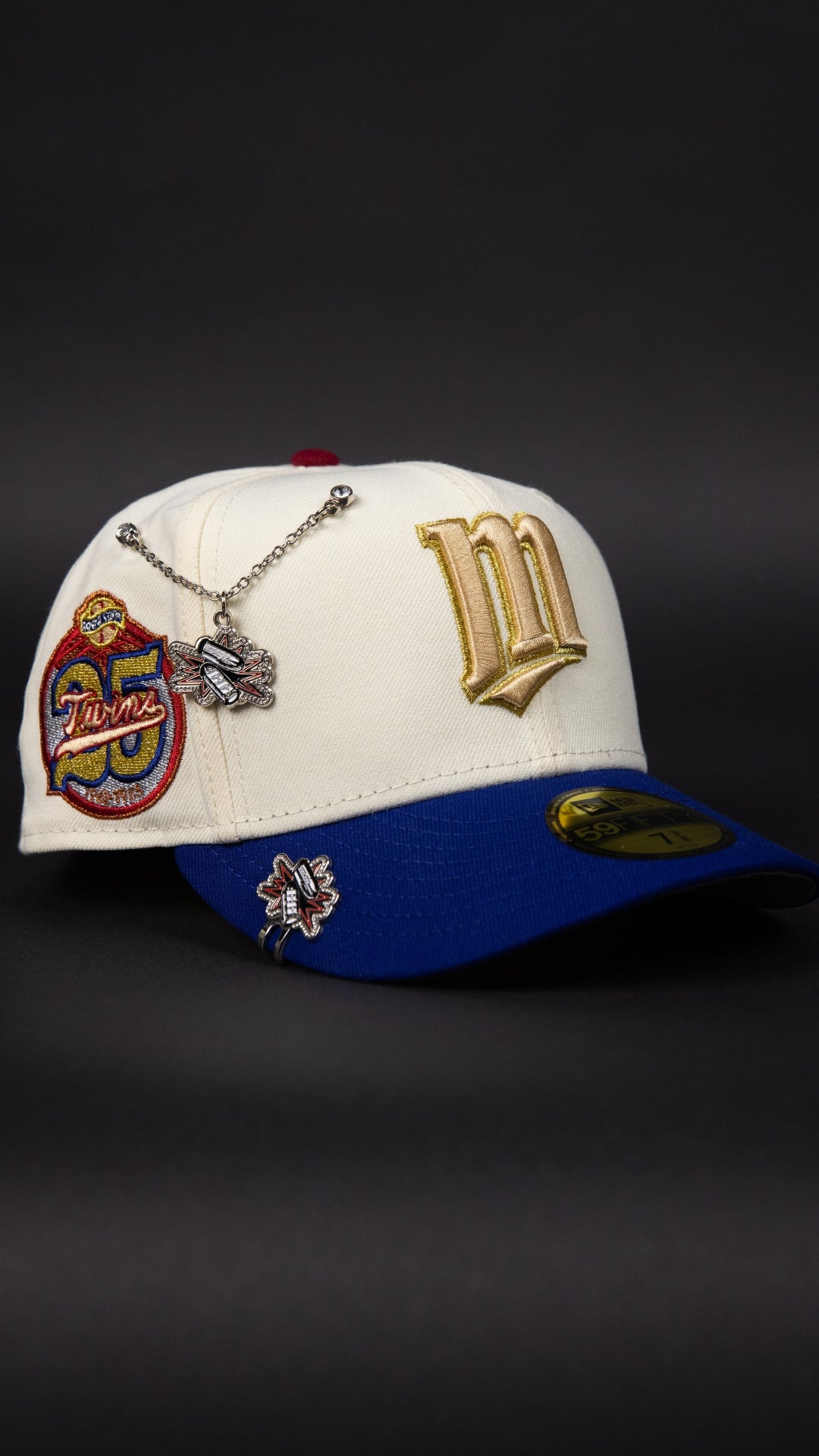 NEW ERA EXCLUSIVE 59FIFTY CHROME/ BLUE MINNESOTA TWINS W/ 25TH ANNIVERSARY SIDE PATCH