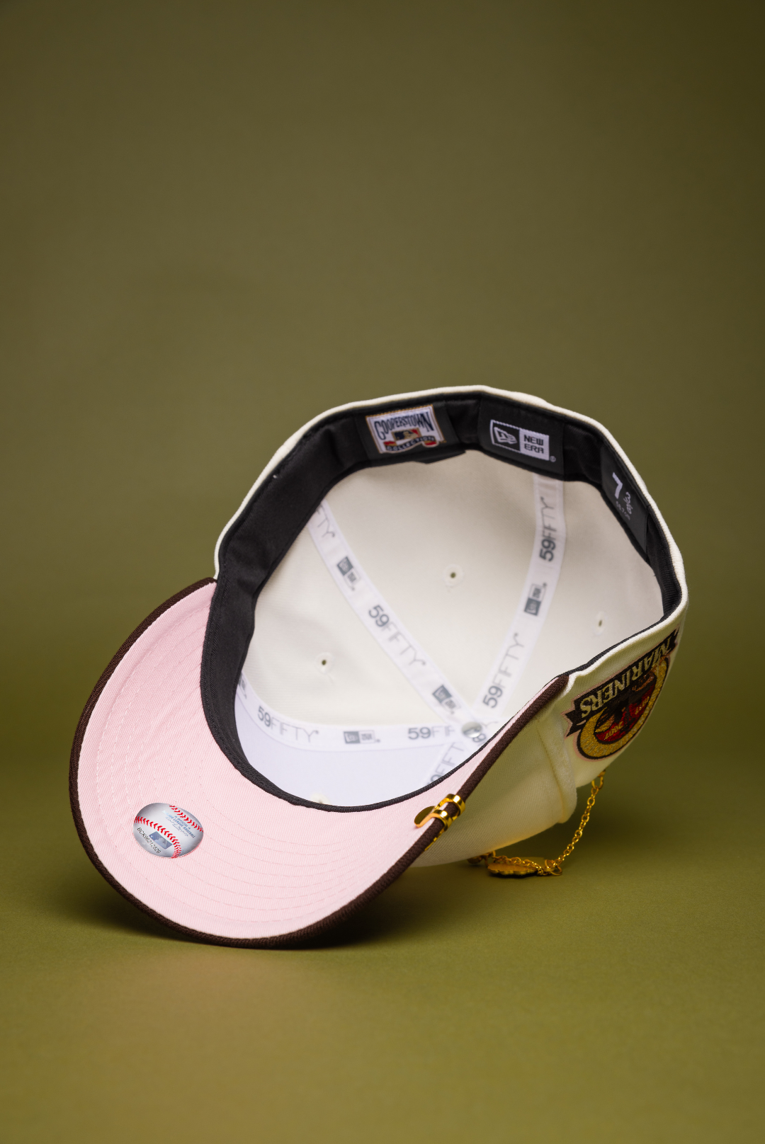 NEW ERA EXCLUSIVE 59FIFTY CHROME/BROWN SEATTLE MARINERS W/ ANNIVERSARY SIDE PATCH
