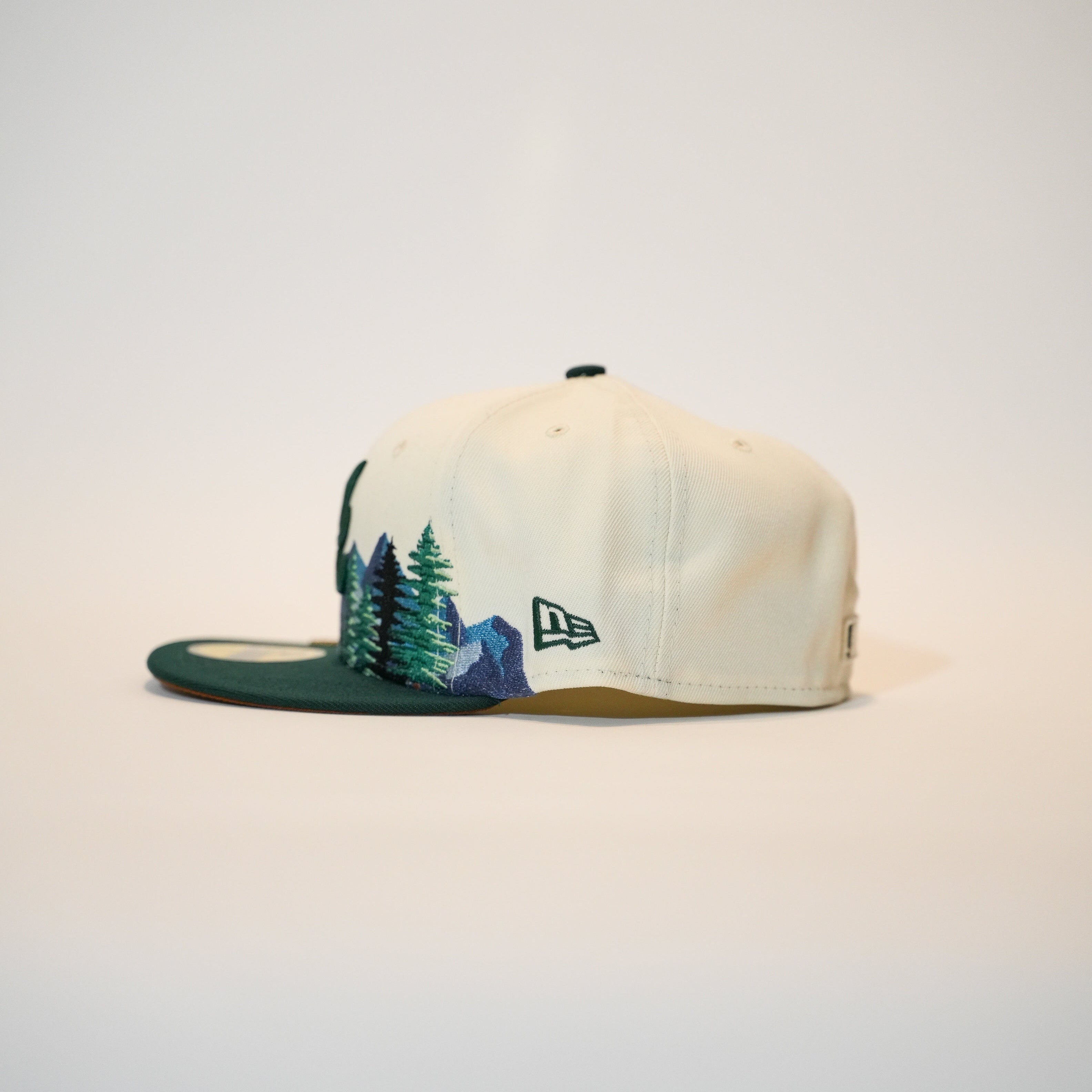 NEW ERA EXCLUSIVE 59FIFTY CHROME/FOREST GREEN ATLANTA BRAVES W/ PINE TREES
