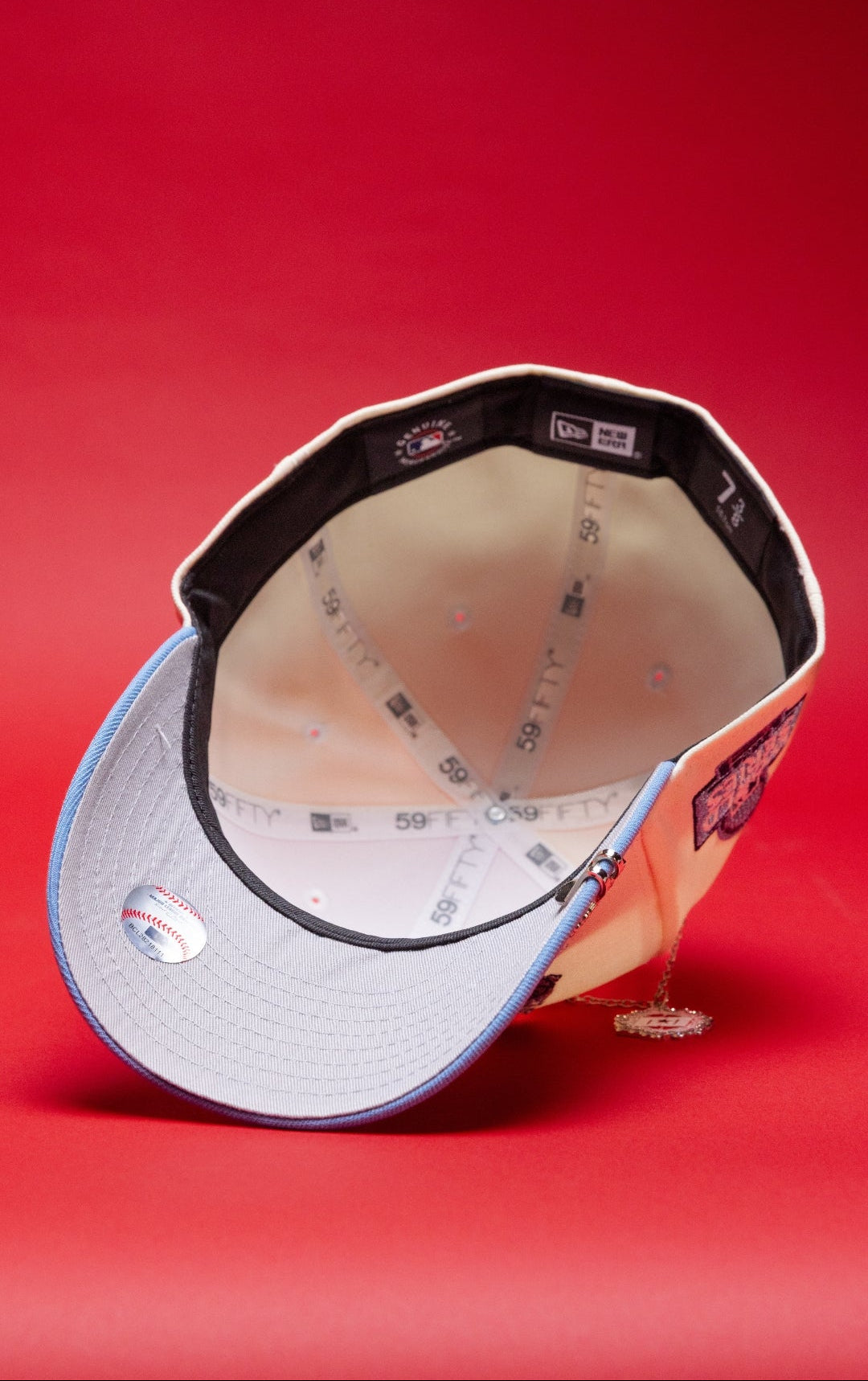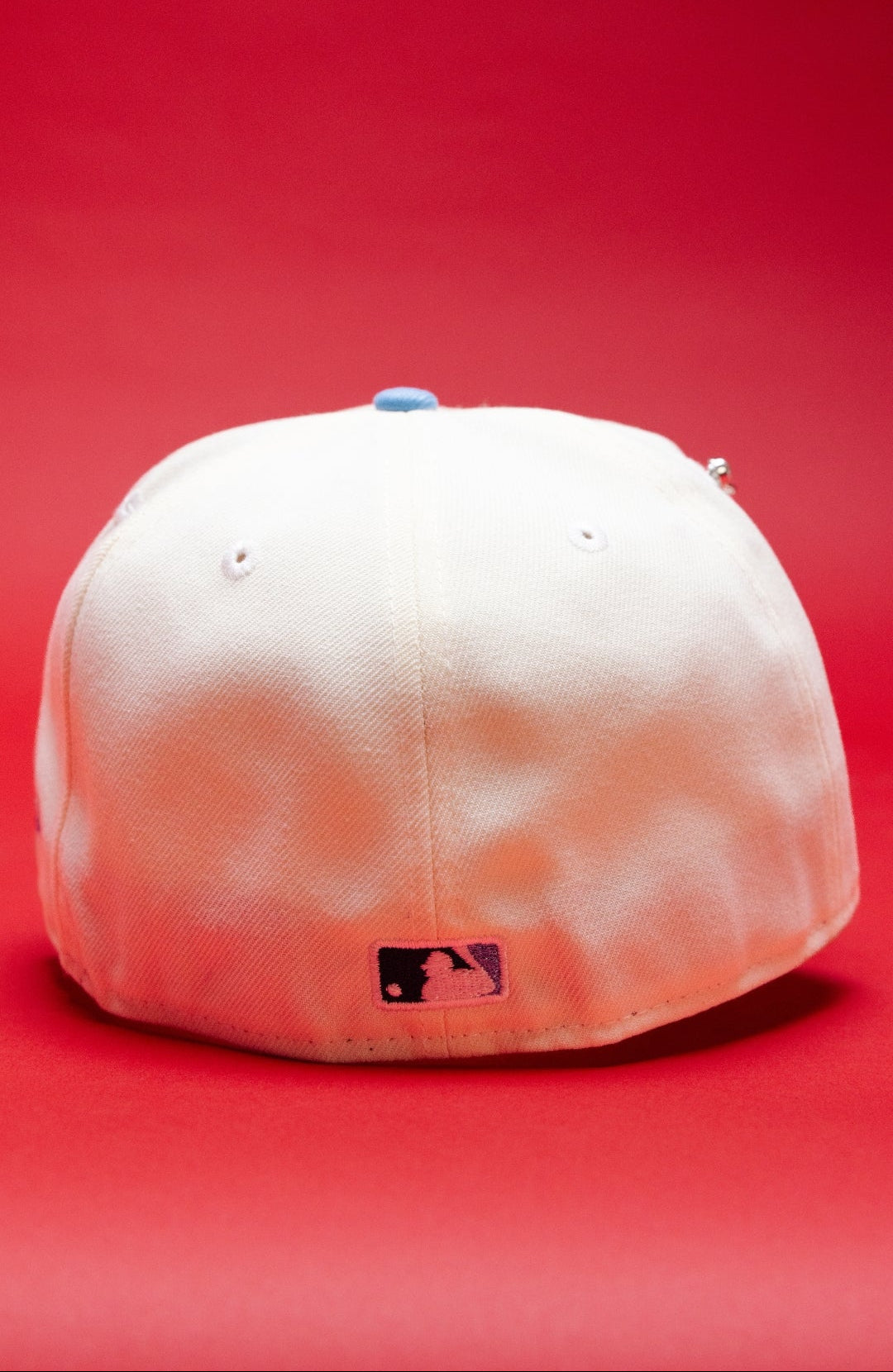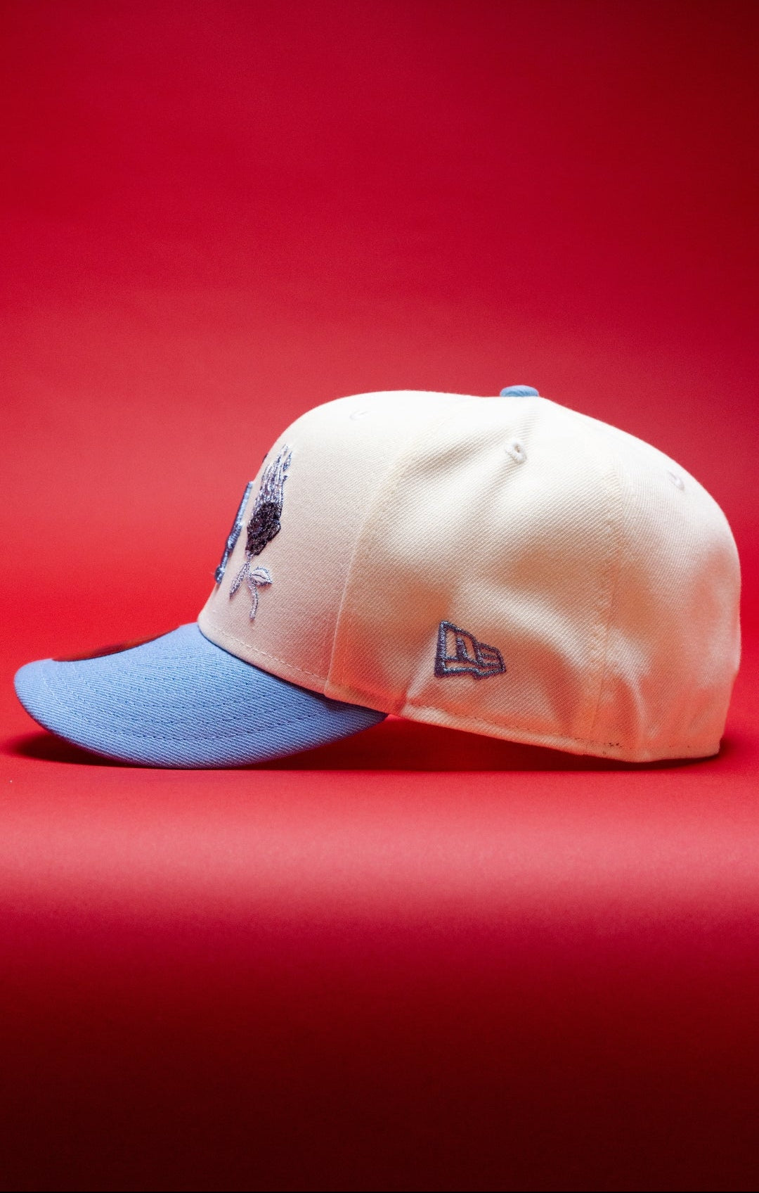 NEW ERA EXCLUSIVE 59FIFTY CHROME/ICY LOS ANGELES DODGERS W/ BURNT ROSES + 2024 WORLD SERIES SIDE PATCH
