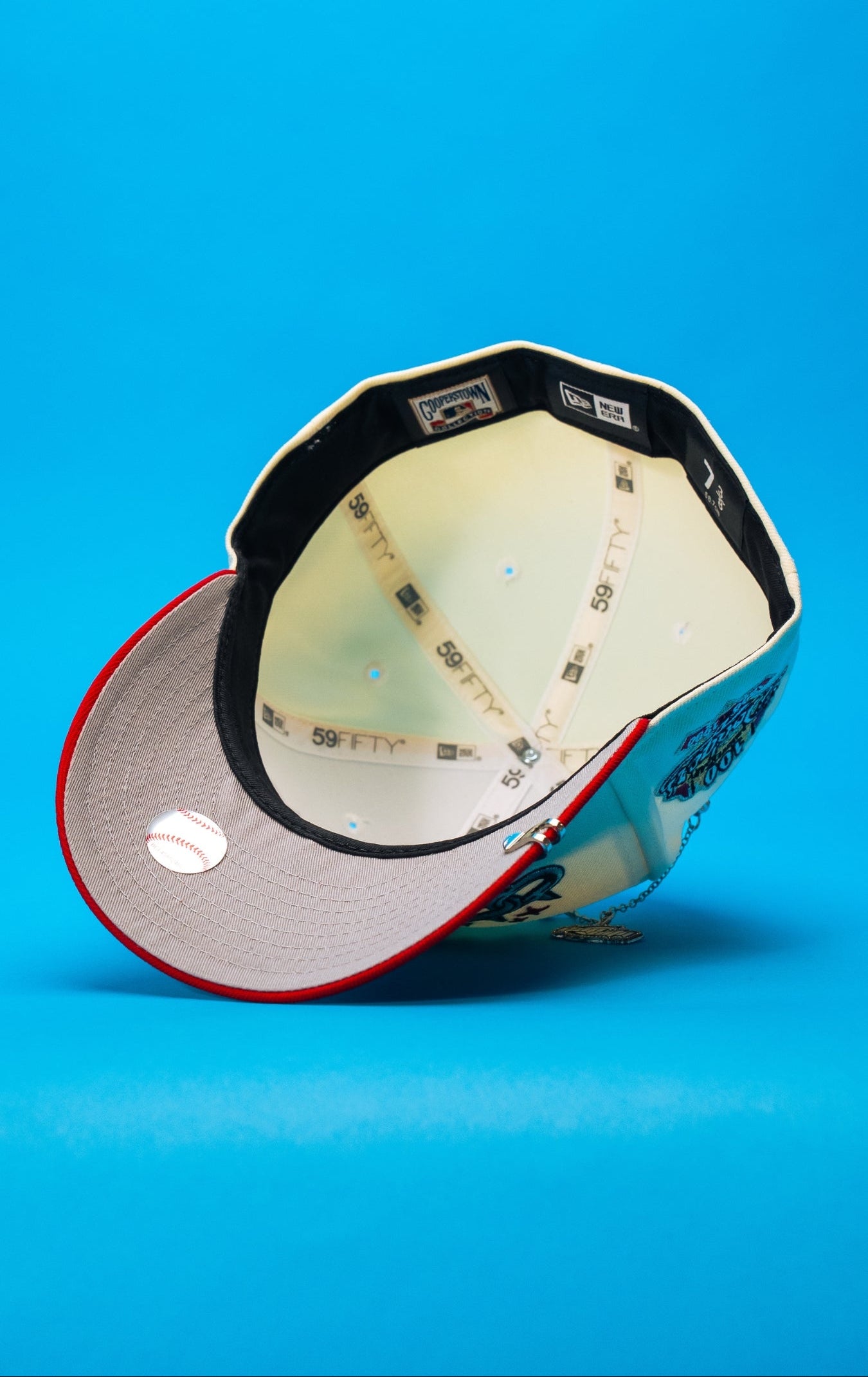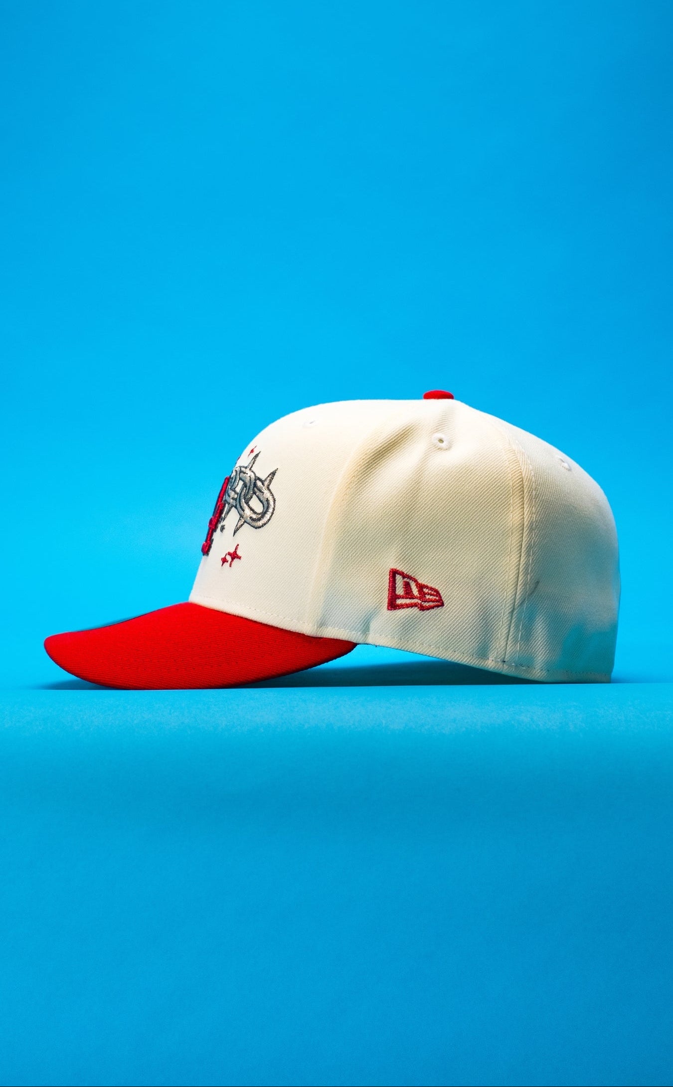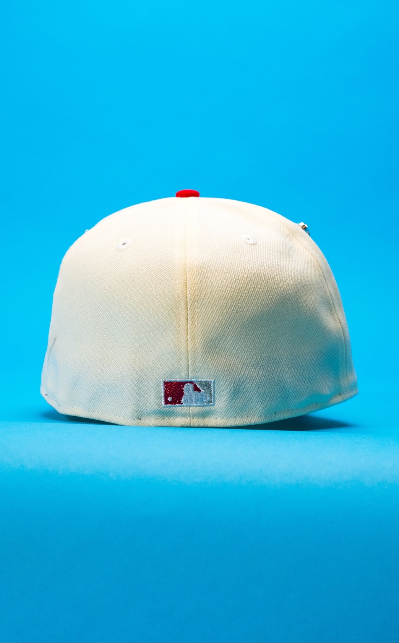 NEW ERA EXCLUSIVE 59FIFTY CHROME/RED LOS ANGELES DODGERS W/ EMBROIDERY + 100TH ANNIVERSARY SIDE PATCH
