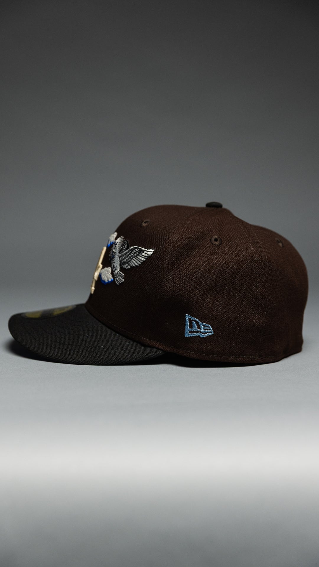 NEW ERA EXCLUSIVE 59FIFTY DARK BROWN/BLACK LOS ANGELES DODGERS 'HEAVENLY CITY" W/ 1984 OLYMPIC SIDE PATCH