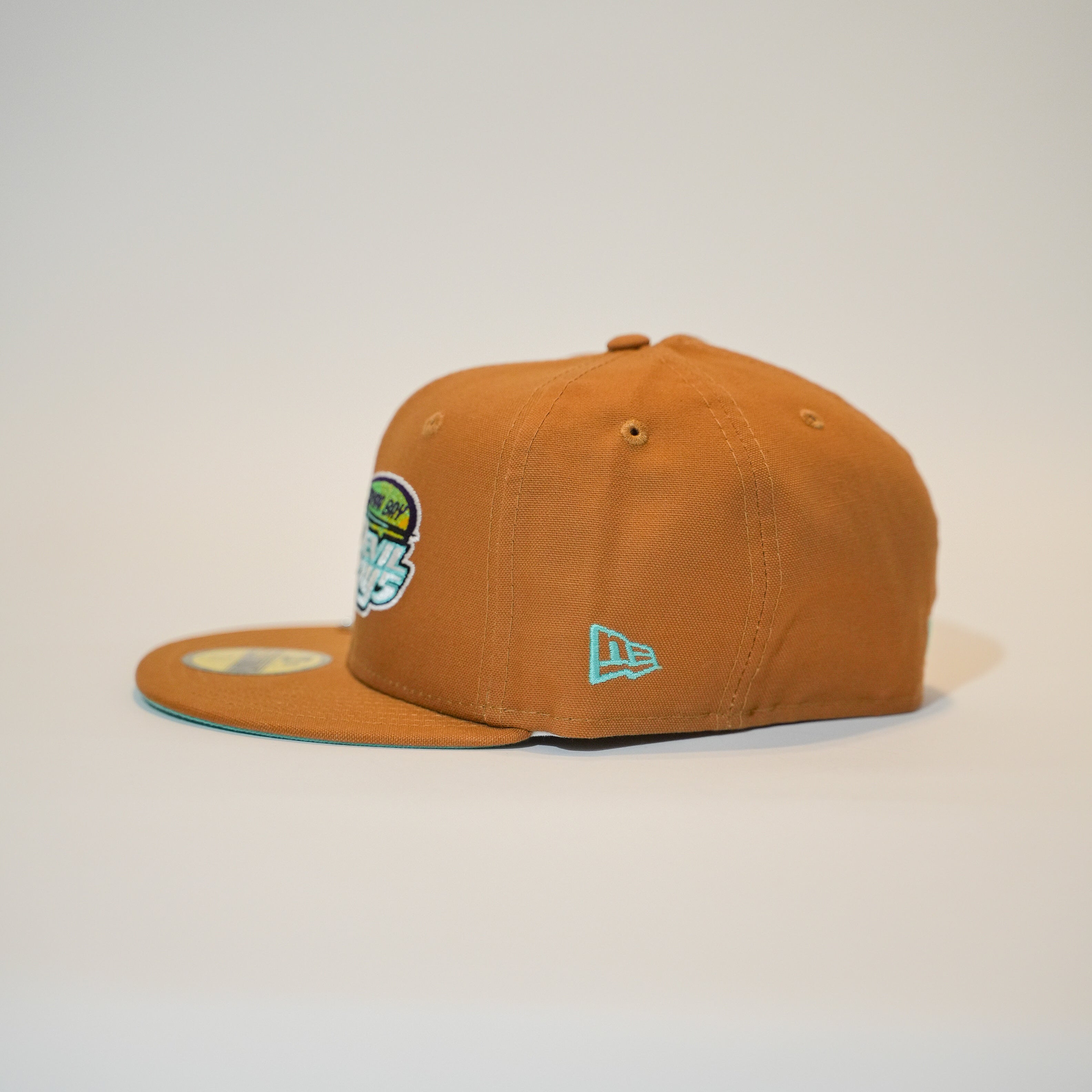 NEW ERA EXCLUSIVE 59FIFTY TAN TAMPA DEVILRAYS W/ 1998 INAUGURAL SEASON SIDE PATCH