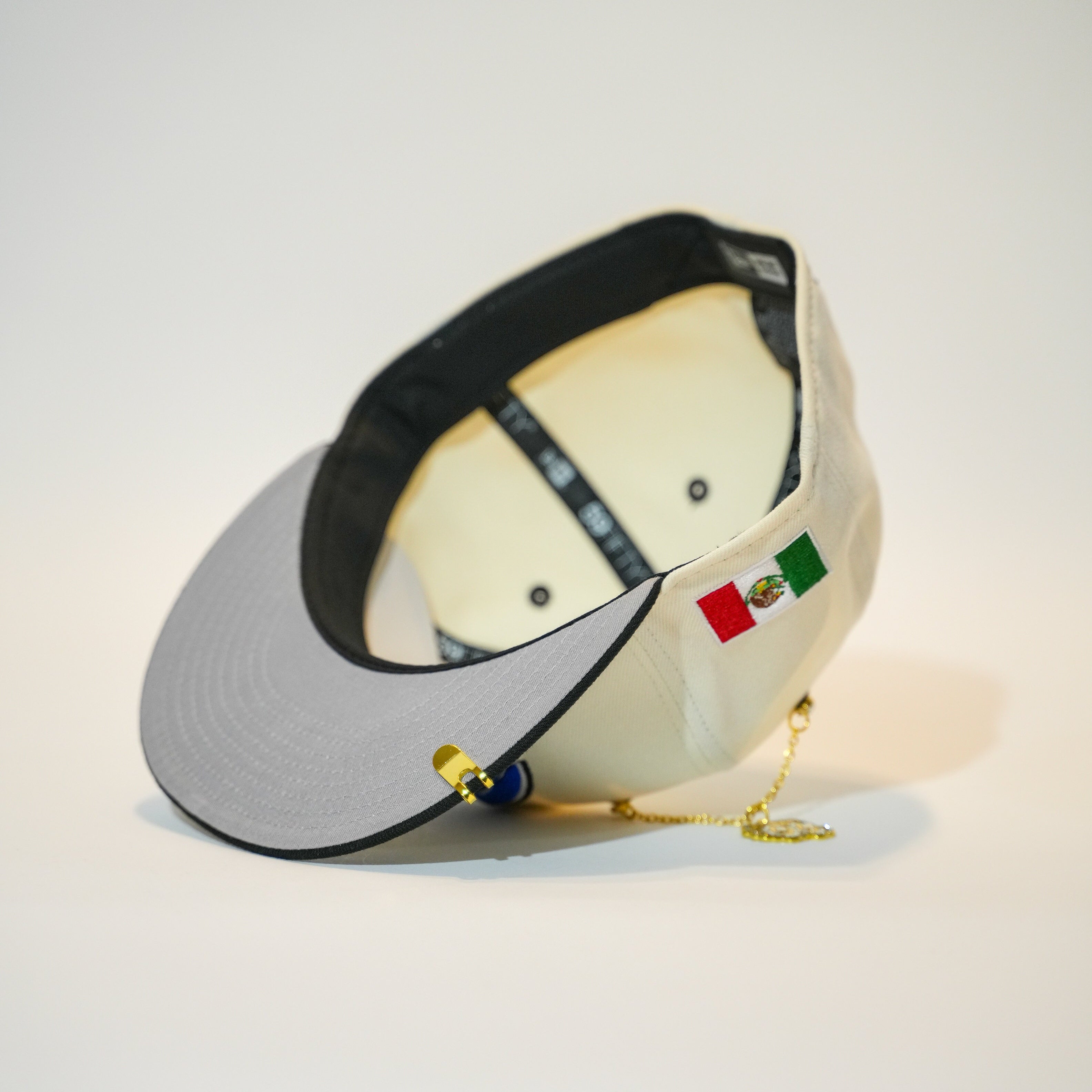 NEW ERA EXCLUSIVE 59FIFTY CHROME/ BLACK CHARROS DE JALISCO W/ MEXICO FLAG SIDE PATCH