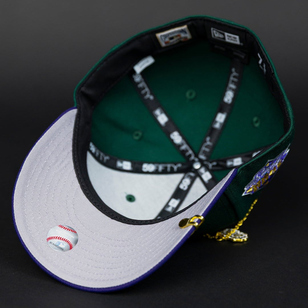 NEW ERA EXCLUSIVE 59FIFTY FOREST GREEN/ PURPLE NEW YORK YANKEES W/ 1999 WORLD SERIES SIDE PATCH