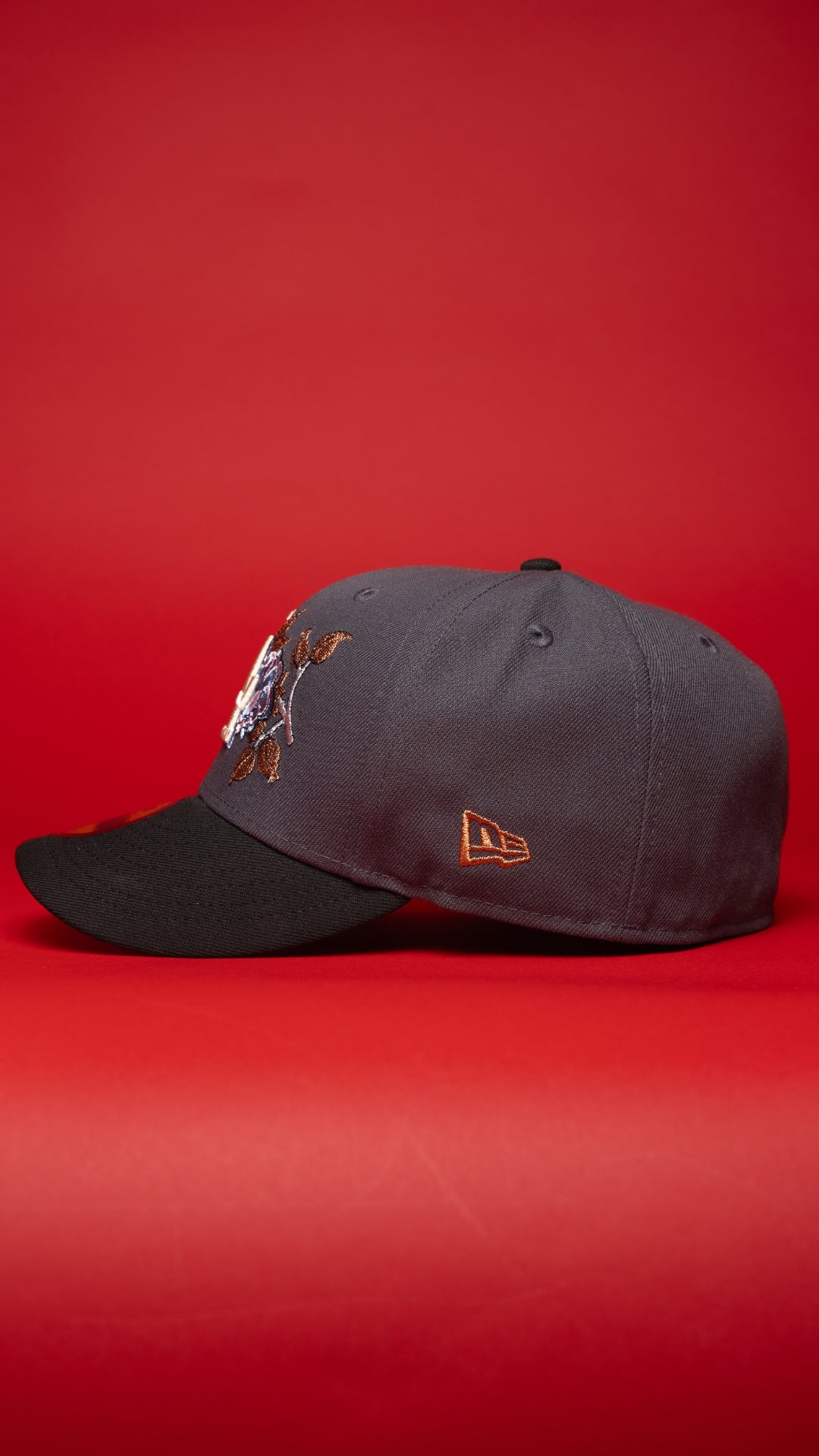 NEW ERA EXCLUSIVE 59FIFTY GREY/BLACK LOS ANGELES DODGERS W/ ICY BLUE ROSE + JACKIE ROBINSON SIDE PATCH