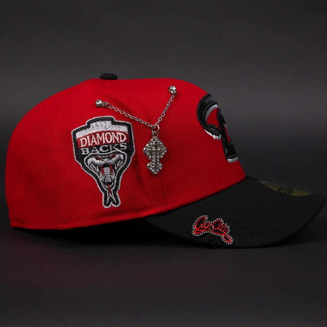 NEW ERA EXCLUSIVE 59FIFTY LAVA RED/ BLACK ARIZONA DIAMONDBACKS W/ 1998 INAUGURAL SEASON SIDE PATCH